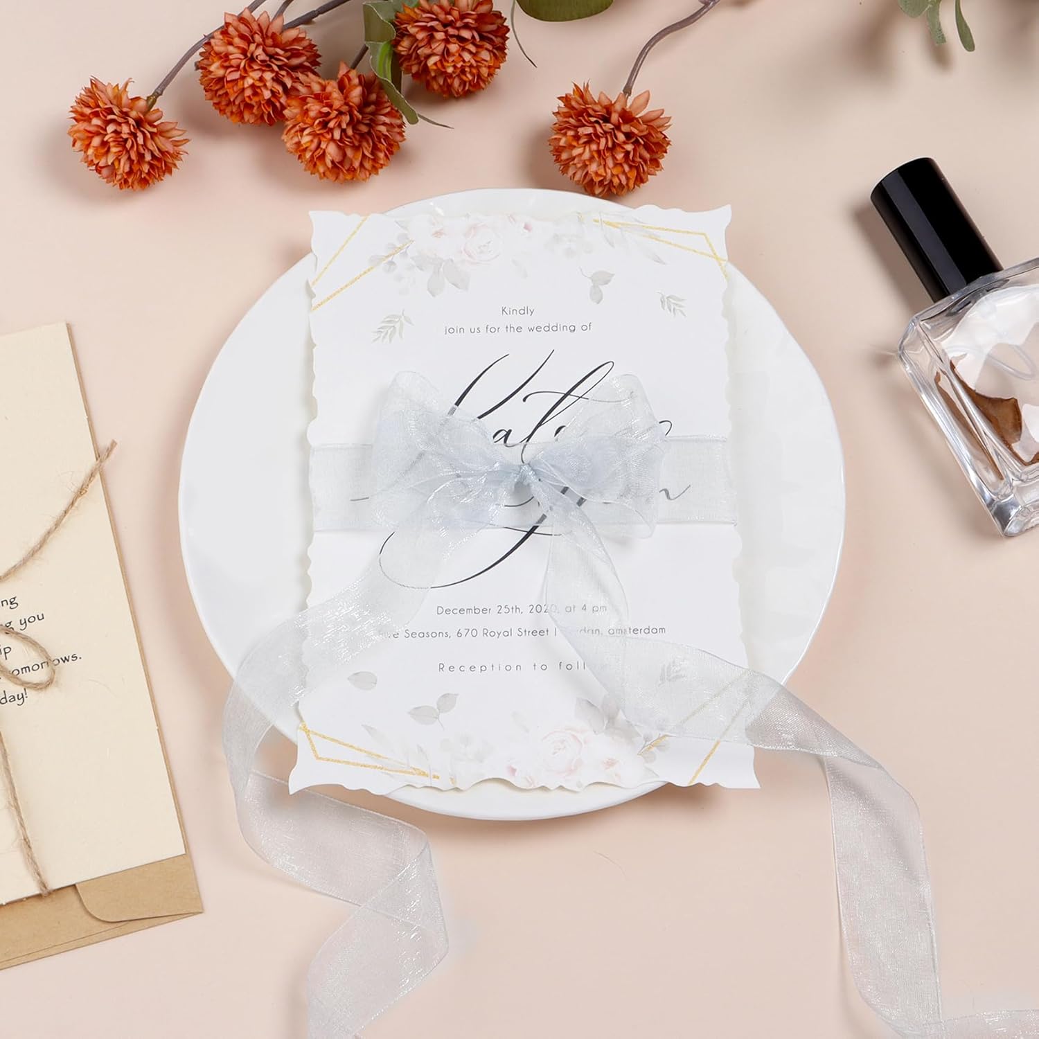 - OUTSTANDING DESIGN: These dusty blue organza tulle ribbons are made of chiffon fabric. Our see-through mesh ribbon with a slight sheen will add an elegant and luxurious touch to your gift, beautiful and lovely, with neat edges, has an innate sturdiness to hold different shapes and is very sturdy.