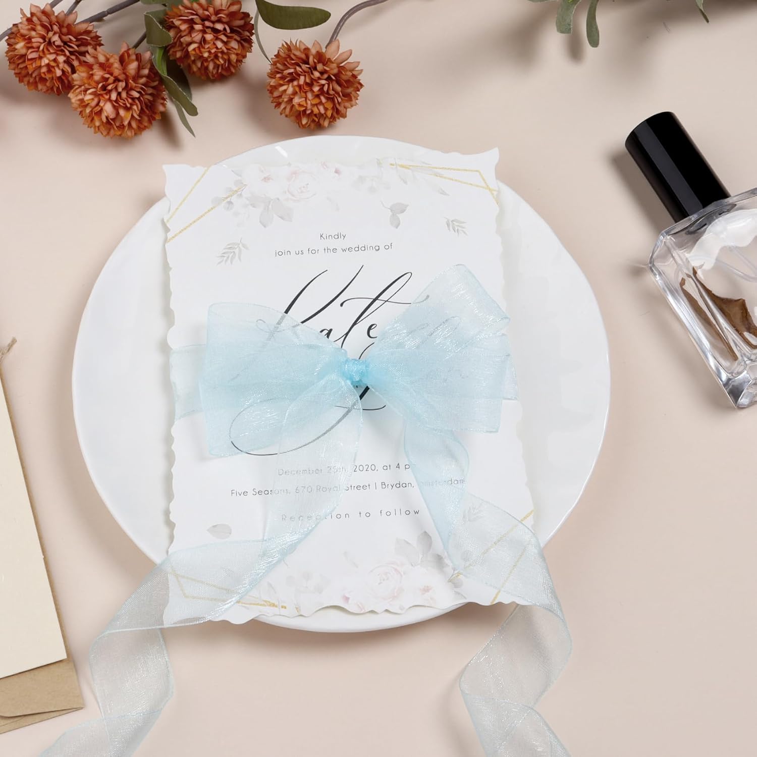 - OUTSTANDING DESIGN: These light blue organza tulle ribbons are made of chiffon fabric. Our see-through mesh ribbon with a slight sheen will add an elegant and luxurious touch to your gift, beautiful and lovely, with neat edges, has an innate sturdiness to hold different shapes and is very sturdy.
