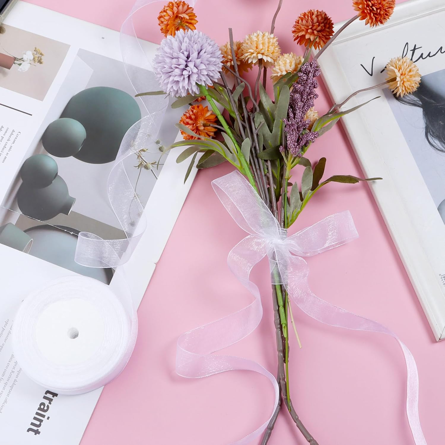 Ribbon for Gift Wrapping 3/4 inch White Sheer Organza Ribbon for Flower Bouquet Tulle Thin Chiffon Ribbons for Wedding Invitations Christmas Halloween Presents Decorations Crafts 50 Yards