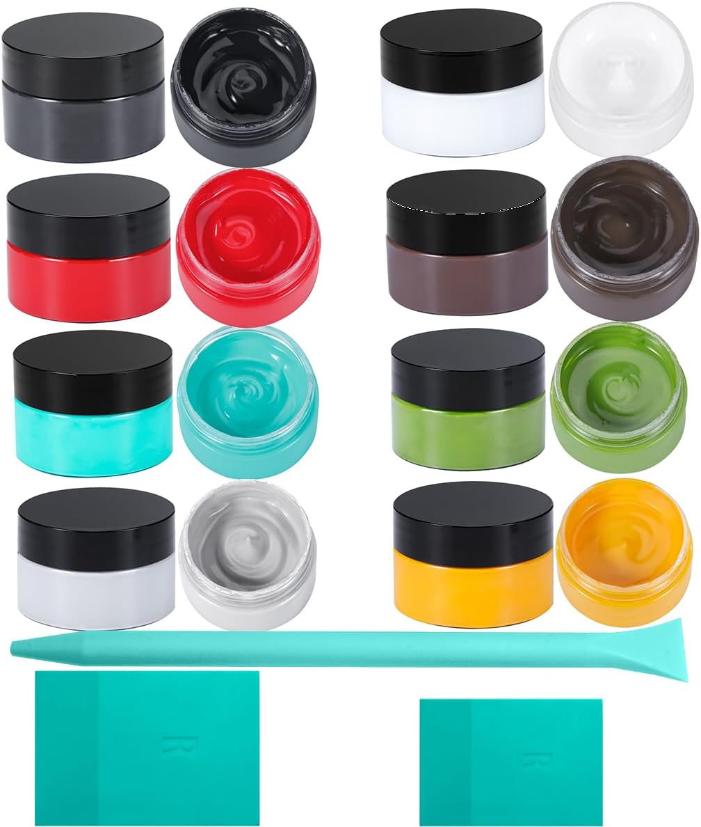 - [STENCIL PASTE SET] All colors are easy to clean with soap and water and odorless. Package includes 8 cans of stencil paste (black . White . Red . Brown . Yellow . Gray . Lake blue. Green and 3 chalk paint spatulas, chalk paste 1 can = 1.8 oz 50 grams, size: 2x2x1.5 inches.