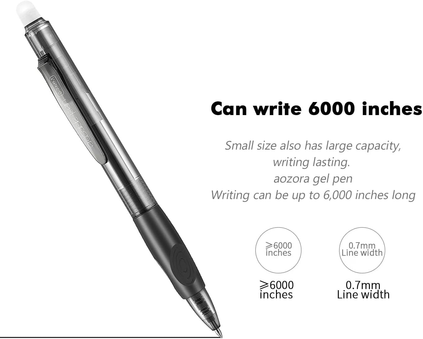 - VERSATILE AND DURABLE: Our erasable pens are ideal for a wide range of uses, including note-taking, sketching, and coloring. With their sturdy design and long-lasting ink, they're sure to become your go-to pens. 0.7mm nib are ideal for everyday use. Retractable design eliminates the risk of losing and finding the pen cap.