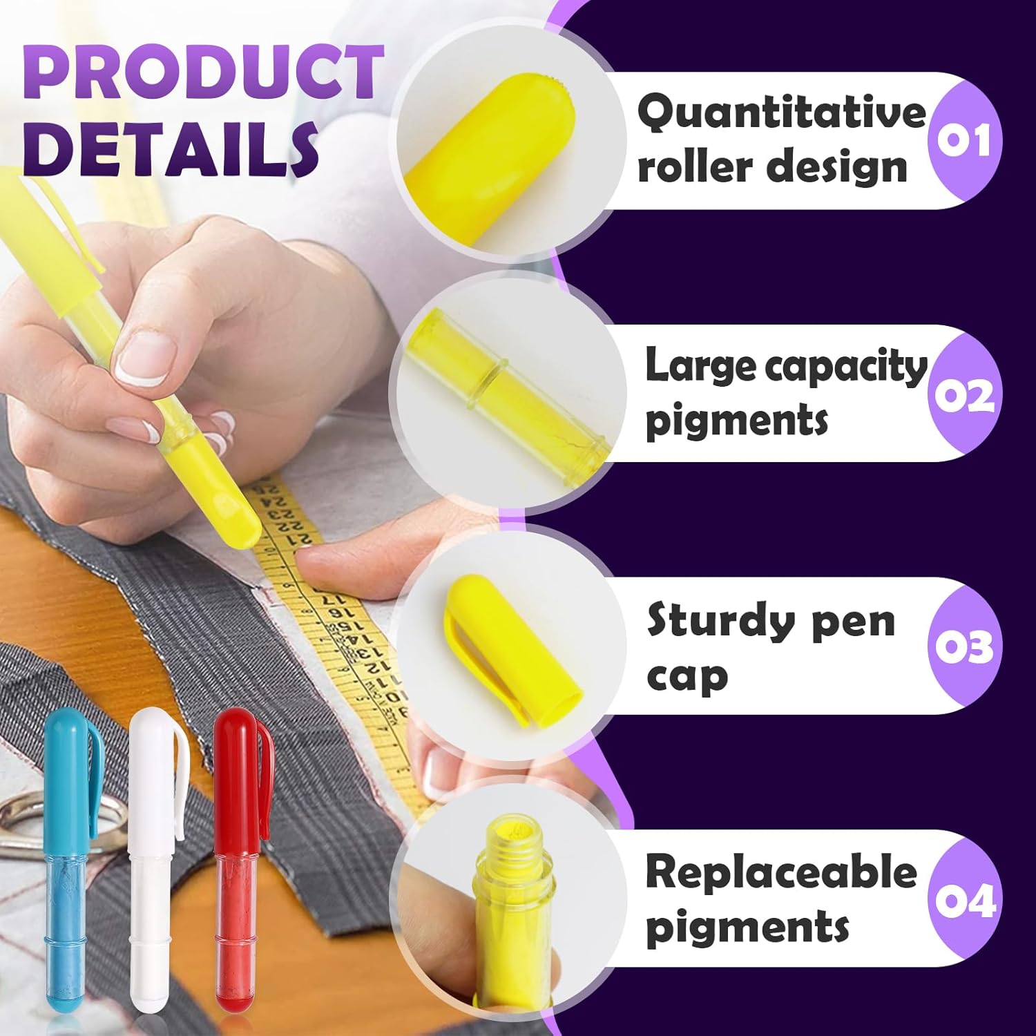 - Compatible with Most Clothing: Our sewing chalk for fabric have a small roller and a precision tip. It is a little master in handling the intricate details of fabrics. So fabric chalk for sewing is suitable for most of the fabrics on the market, such as fabrics, cottons, leathers and so on.