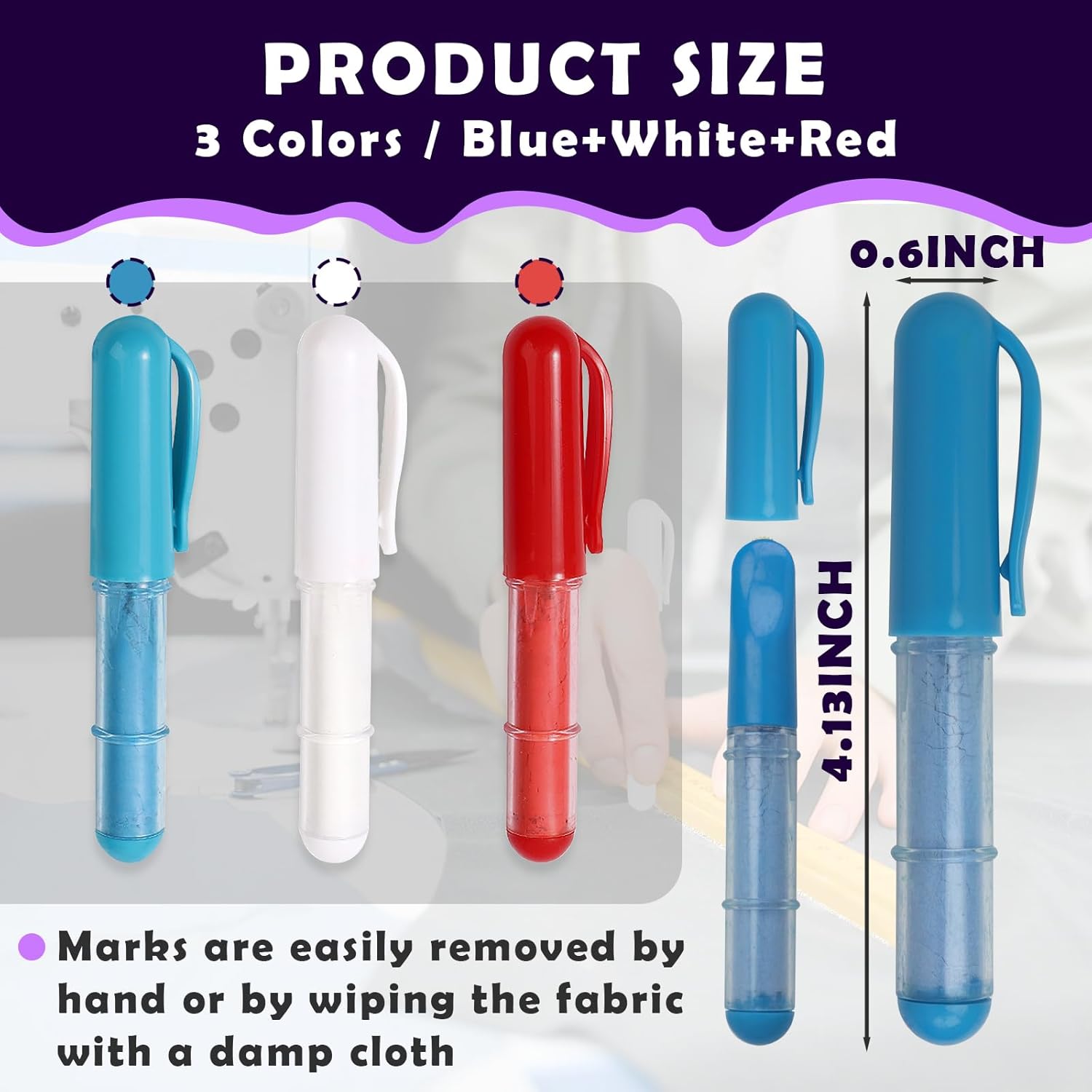 3PCS Sewing Chalk for Fabric, Wipeable and Washable Fabric Chalk for Sewing, Tailors Chalk for Fabric Etailed Marking on Fabrics, Cottons, Leathers - Blue, White, Red