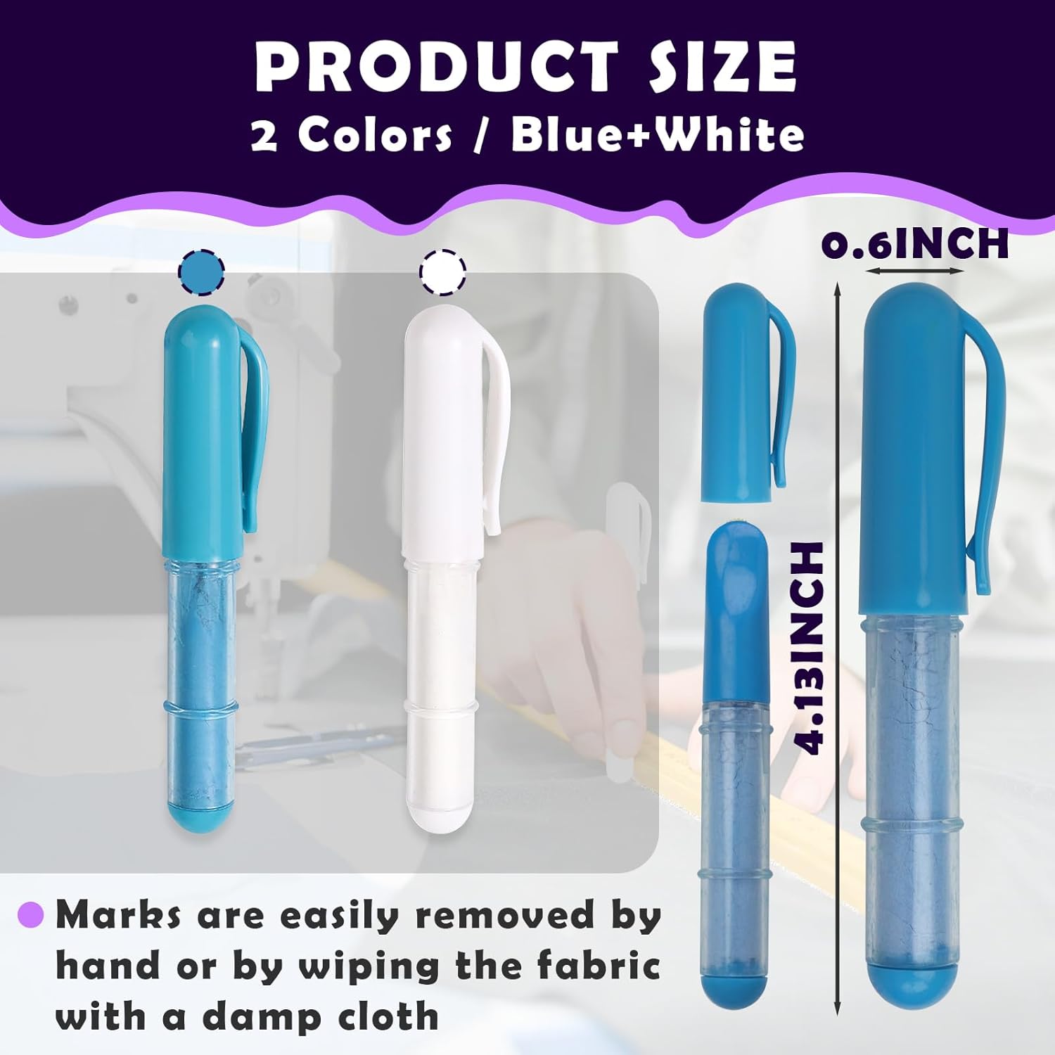 2PCS Sewing Chalk for Fabric, Wipeable and Washable Fabric Chalk for Sewing, Tailors Chalk for Fabric Etailed Marking on Fabrics, Cottons, Leathers - Blue, White