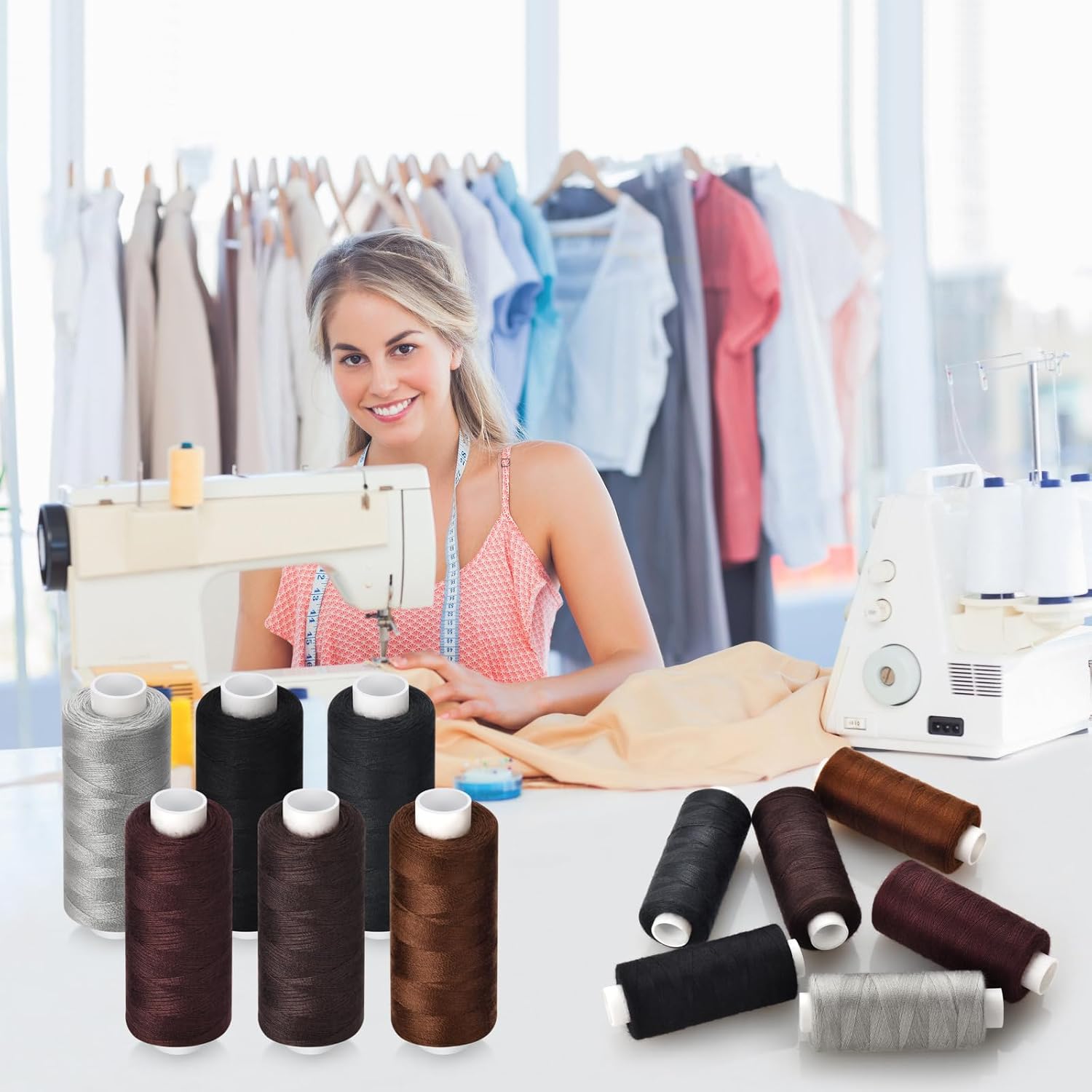6 Pcs Polyester Thread Kit - 400 Yards Each Spool, Sewing Threads for Machine & Hand Stitching, Embroidery, Includes Sewing Needle & Threader