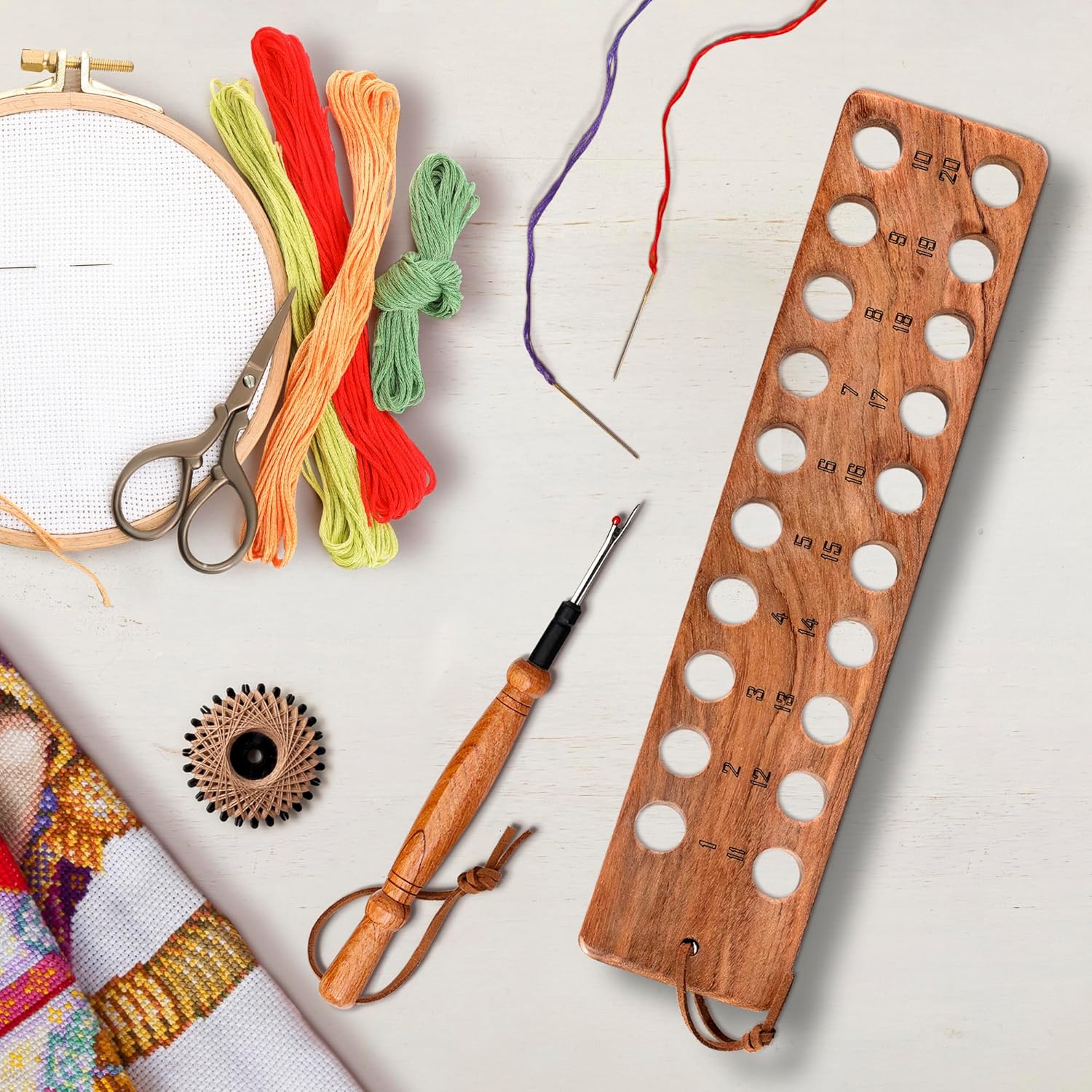 - Thoughtful Features: Our Thread Board has carved numbers on it to help you distinguish between colors in your work. Additionally, a keyhole slot allows you to hang it conveniently when not in use.