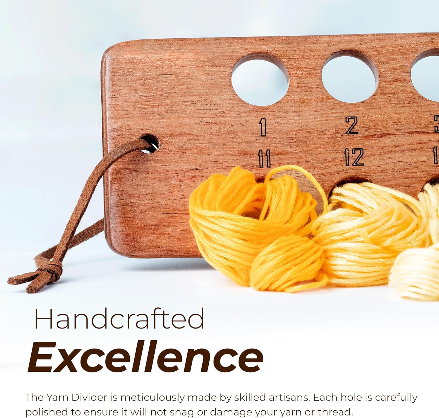 - Handcrafted Excellence: The Yarn Divider is meticulously made by skilled artisans. Each hole is carefully polished to ensure it won’t snag or damage your yarn or thread
