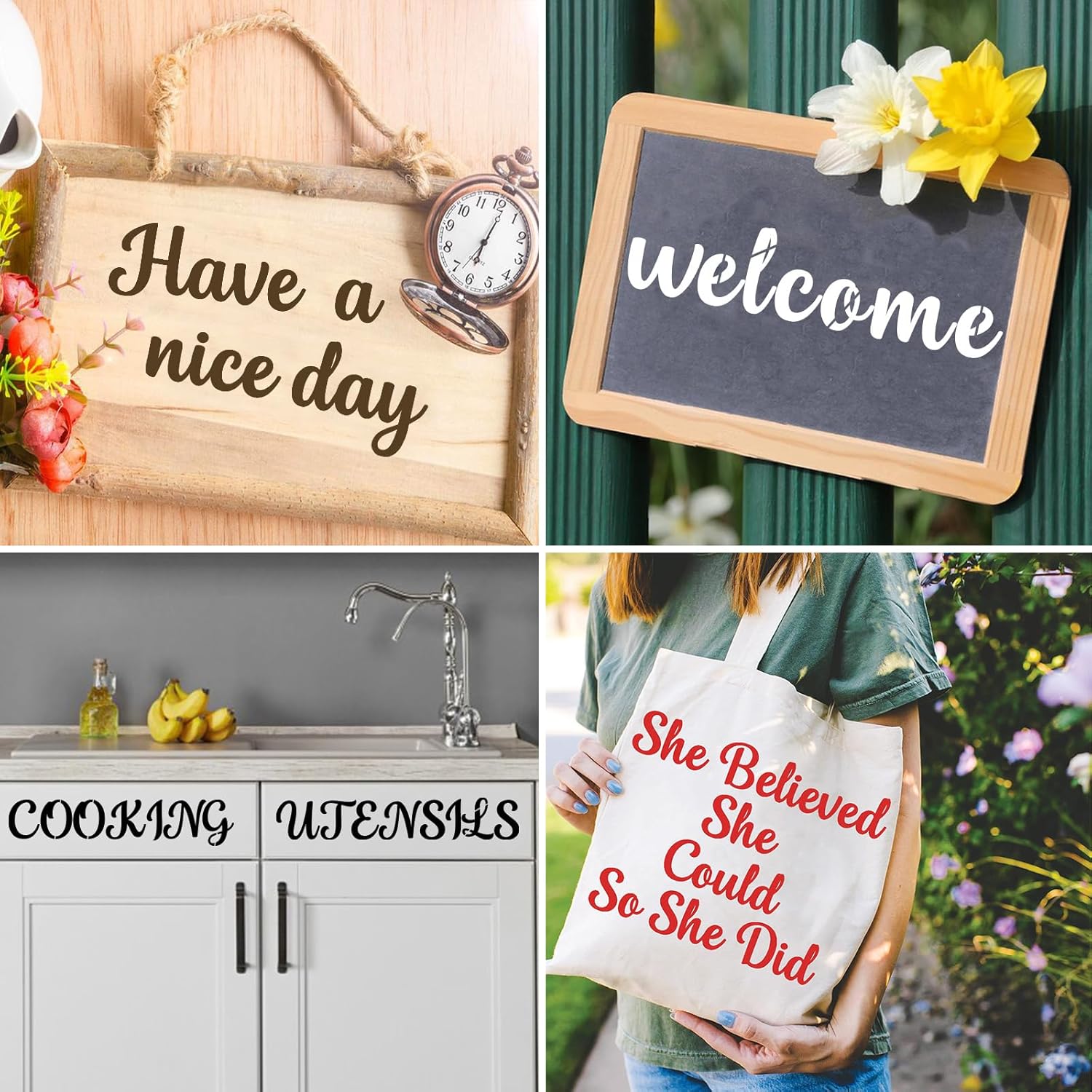 - 【Suitable Occasions】: These alphabet number and symbol stencils are suitable for many occasions. They can be applied for wedding, banners, signage making, poster making, festivals, card DIY, home or party crafts, office decor, porch sign, like journal/fabric/cake decoration, airbrushing, making photo album cards, and more DIY art projects.