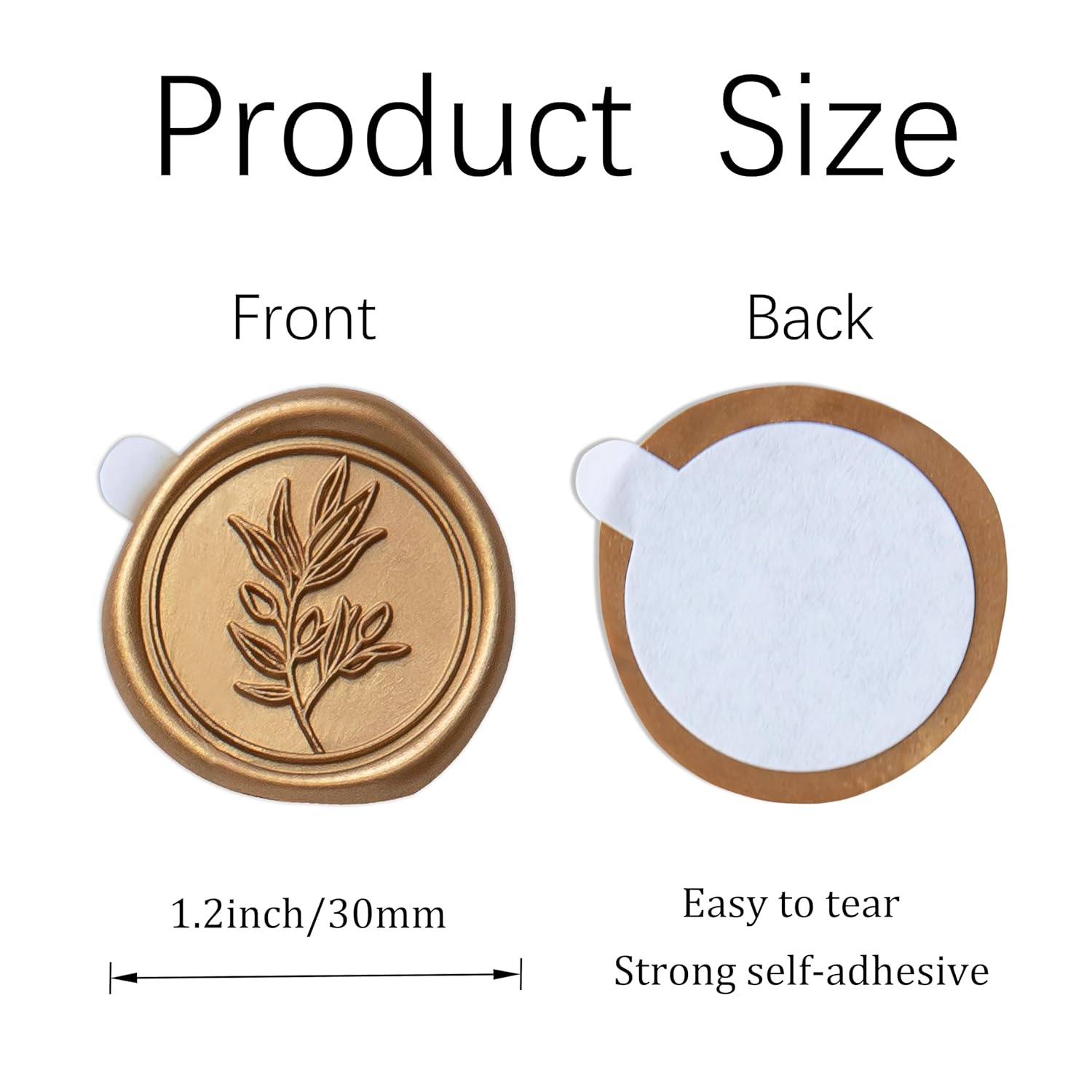- 【Size & Weight】– The adhesive stickers is diameter is about 1.2 inches/30mm and with almost the same size of adhesive on the back. Weights about 0.10oz per seal and may add weight to envelopes.