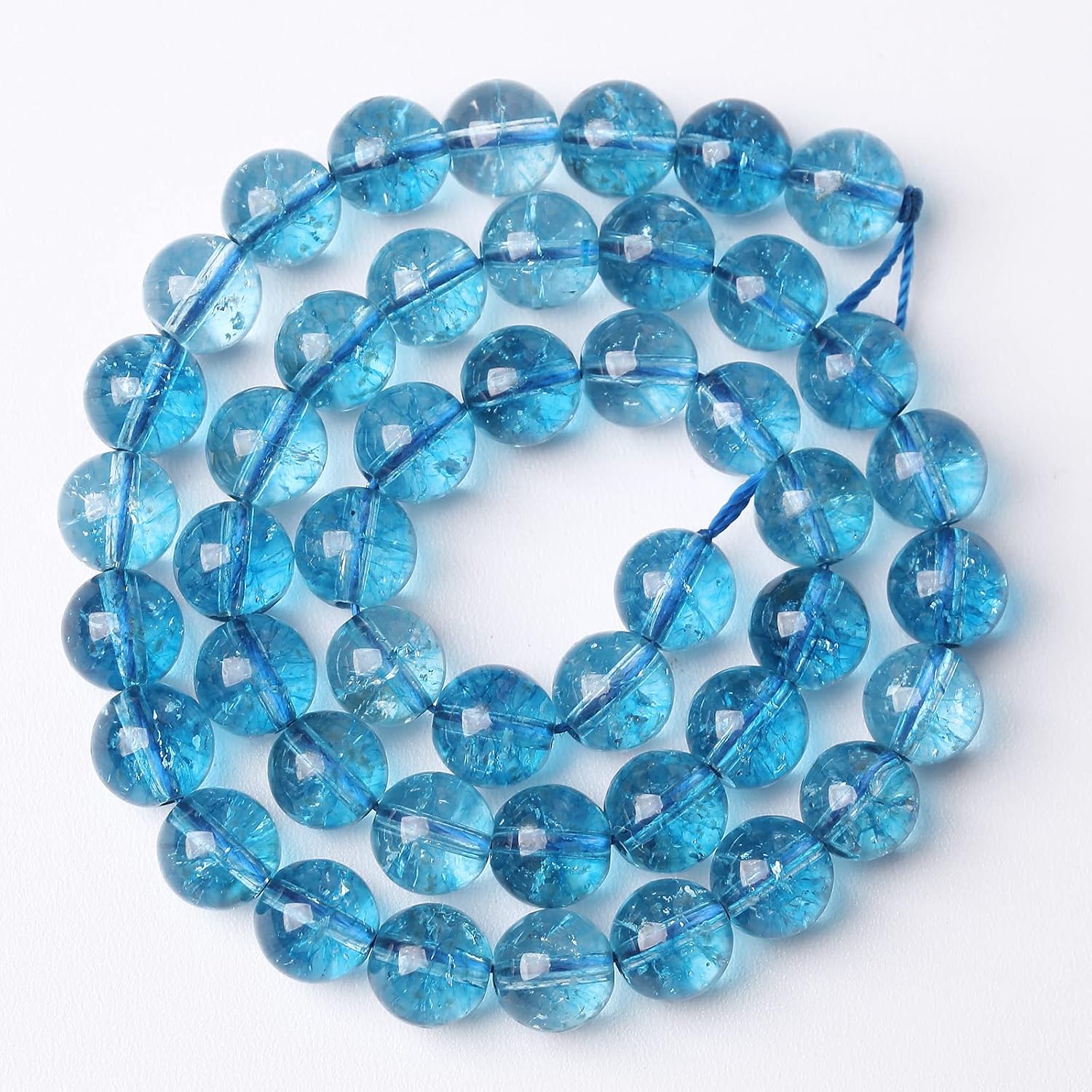 74pcs 10mm Blue Topaz Crystal Quartz Natural Stone Round Loose Beads for Jewelry Making DIY Bracelet Necklace Earrings 32" 2 Strands