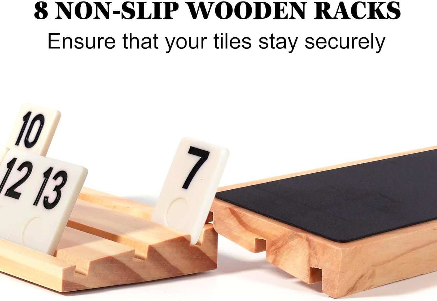 - UPGRADE YOUR EXPERIENCE: Enjoy 8 non-slip racks crafted from pine wood, showcasing the natural grain of the tree. These sturdy racks ensure that your tiles stay securely in place, enhancing your game play