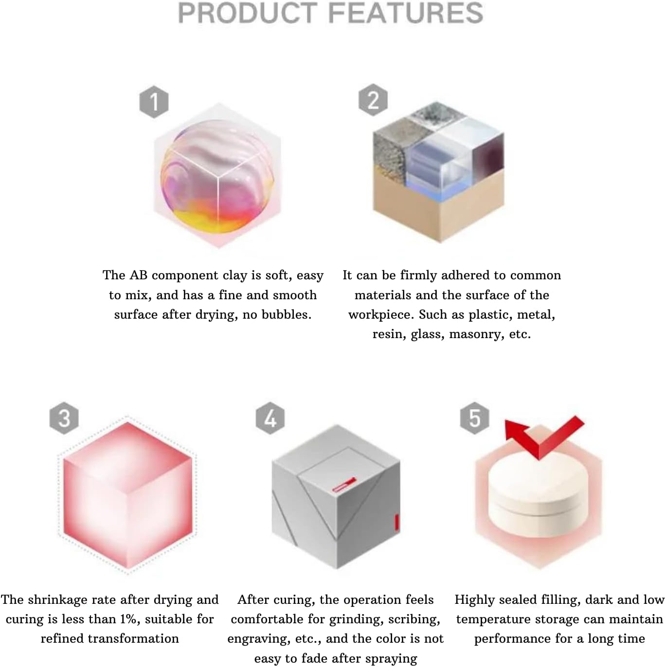 - PREMIUM MATERIAL: High-quality material: We use high-quality epoxy clay material, the shrinkage rate after hardening is less than 1% and the hardness is high. After hardening, it can be shaped with tools such as files, and can be colored with pigments