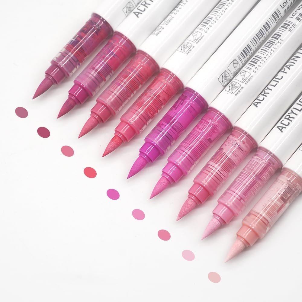 Water Based Acrylic Paint Markers, 9 Colors Acrylic Paint Pens Set with Soft Brush Tip, Marker Pen for Rock Painting, Egg, Wood, Glass, Paper, Mugs, Acrylic Painter Ink (Sweet Pink Series)