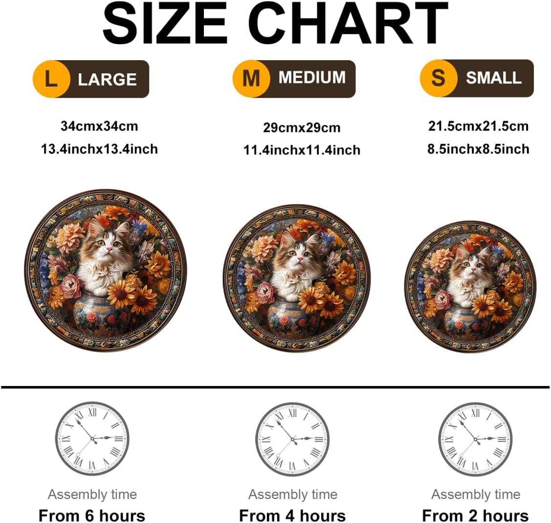 Wooden Puzzles Adults, Beautiful Tricolor Cat Wooden Puzzles 300 Pieces, Unique Animal Shaped Wood Challenging Jigsaw Puzzles Gifts for Adults, 13.4x13.4in