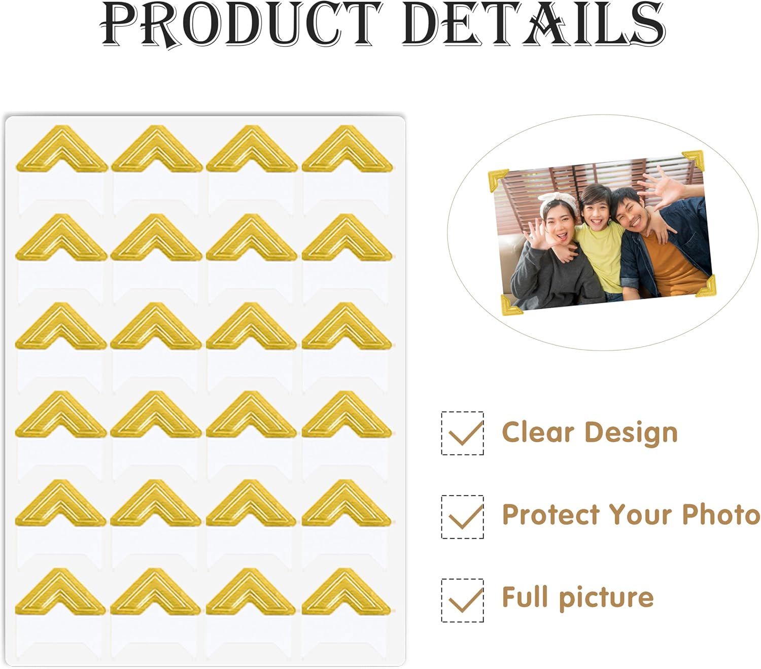 - Easy to Use: Simply peel the scrapbook photo corners off the sheets and apply directly to album pages, or slip over corner of a photo and position on album page. The self-adhesive photo sticky corners will not cover up your photos to show complete pictures