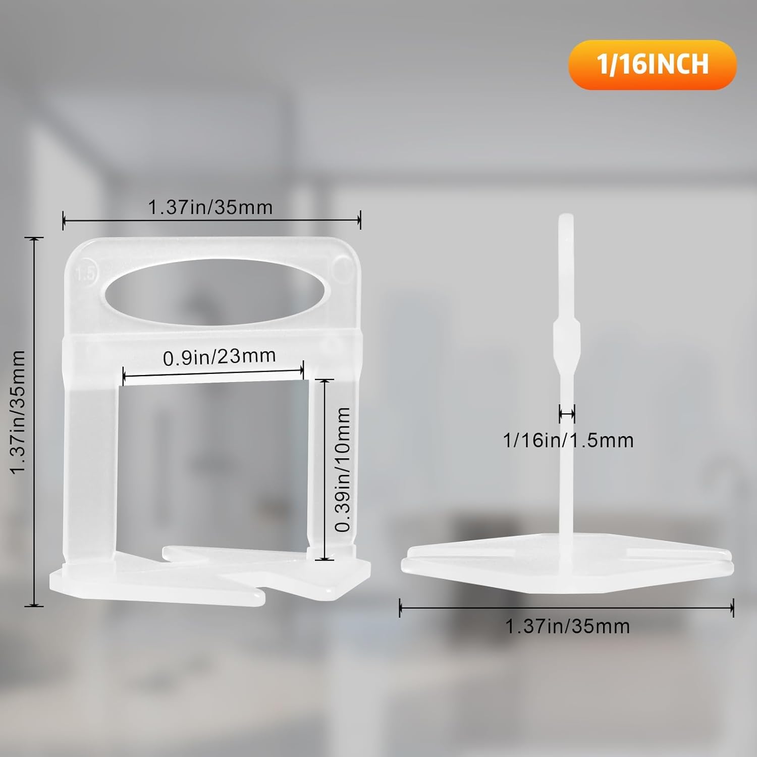- Tile Clips: Package included: Leveling Spacer Clips (Not included wedges and plier). Suitable for 1/8" to 1/2" thickness of the tile, 1/8" grouting joint (tile gap > 1/8")