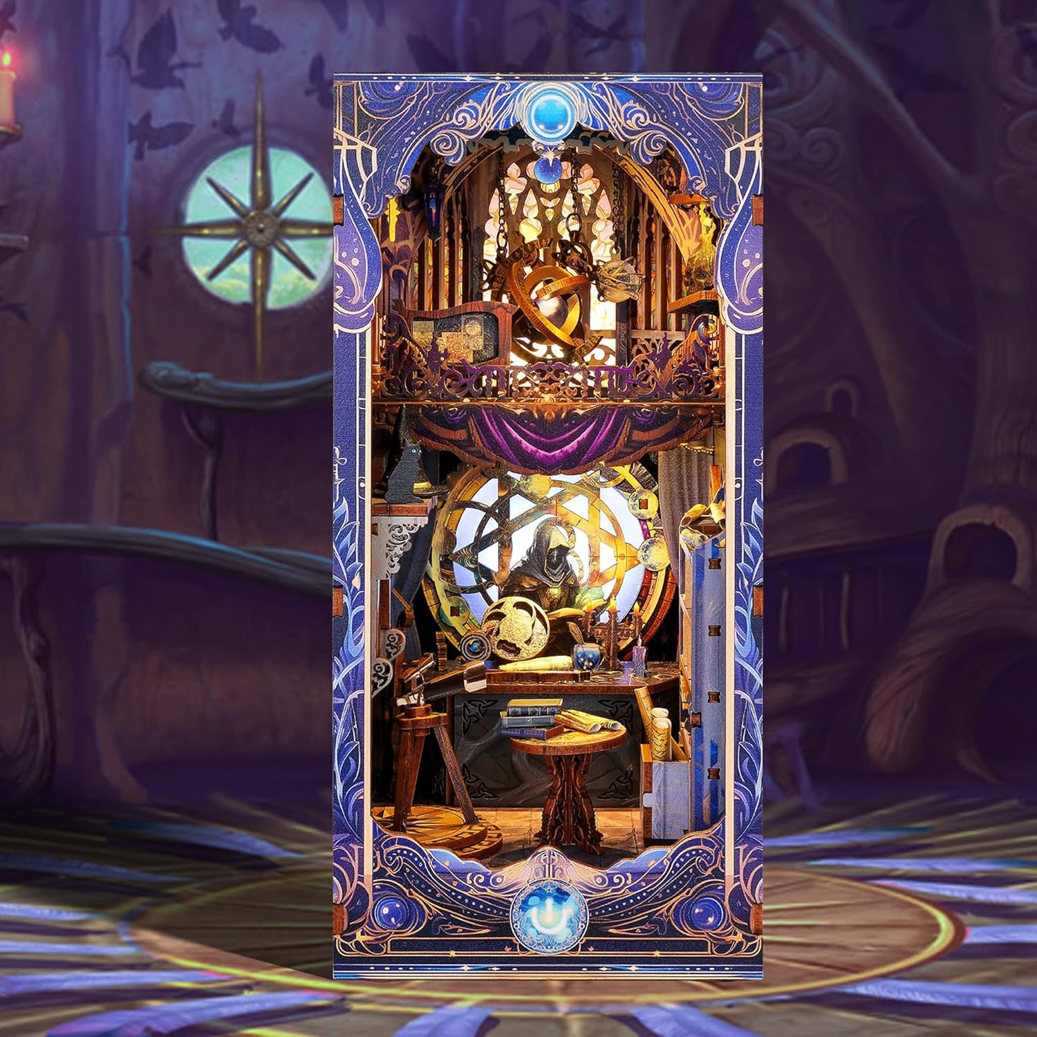 - 【Dive into the Mystical World of Astrology】Unlock the secrets of the cosmos with this 3D wooden puzzle book nook kit. Featuring a celestial astrology lab with an astronomer’s telescope, star charts, and mystical scrolls, this design is perfect for those fascinated by the stars and the universe.