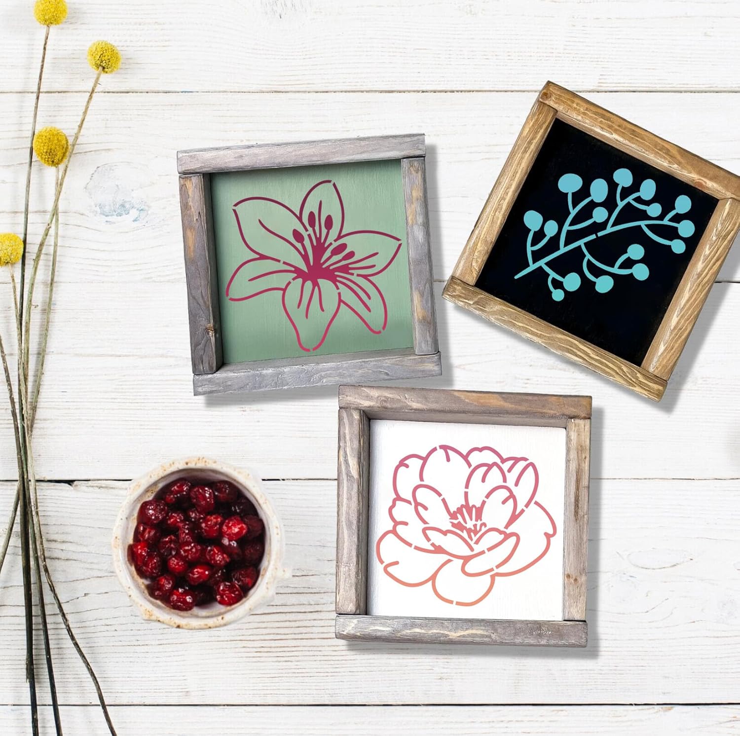 - Flower Stencils:The reusable paint stencils are the perfect addition to your daily crafts needs.You can decorate wood sign,clothes,cards,cup,scrapbook,etc.