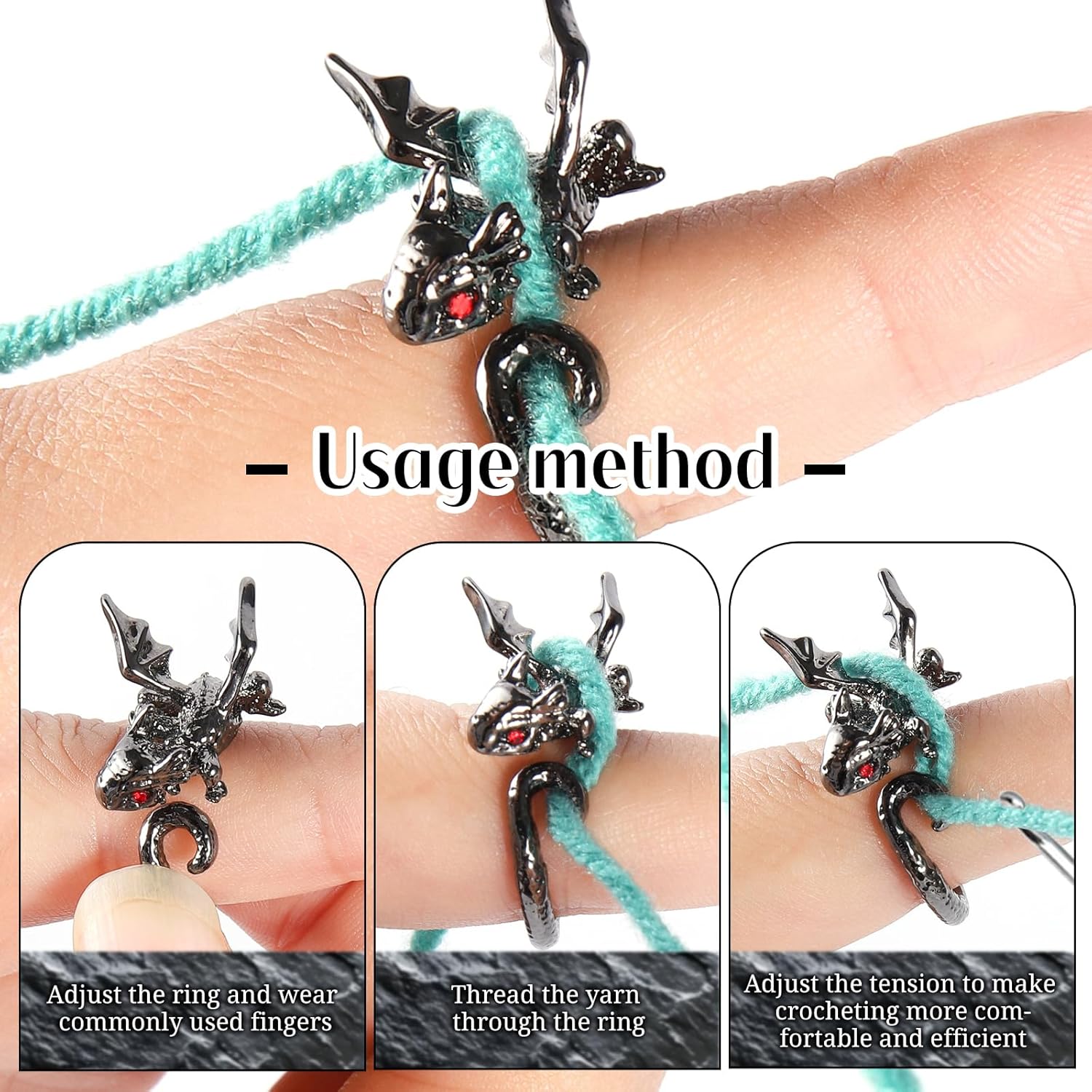 - Multi-Purpose Crochet Rings: Each intricately designed dragon crochet tension regulators serves triple duty: as a tension rings for crocheting to control yarn flow, a crochet ring for finger ergonomic support, or a decorative crafting accessory for craft projects