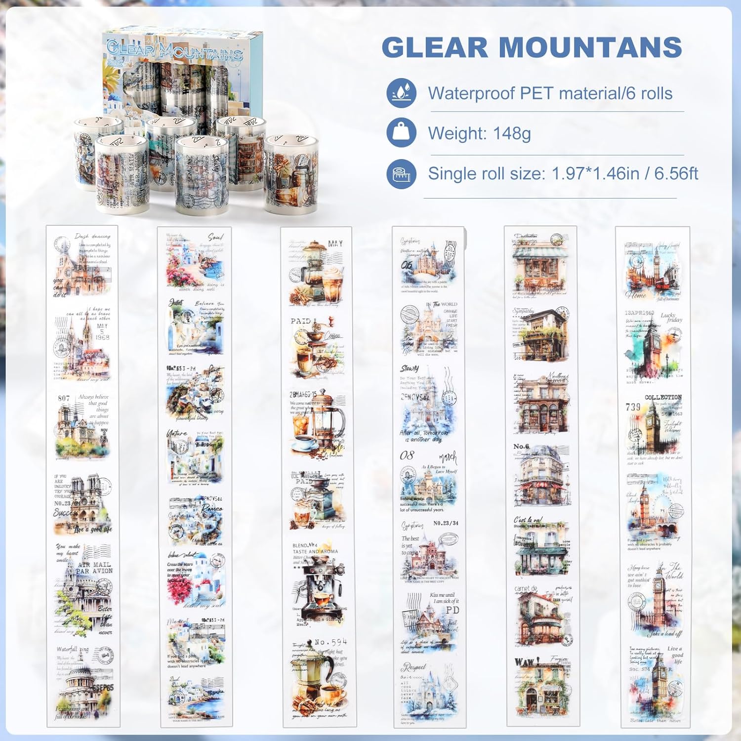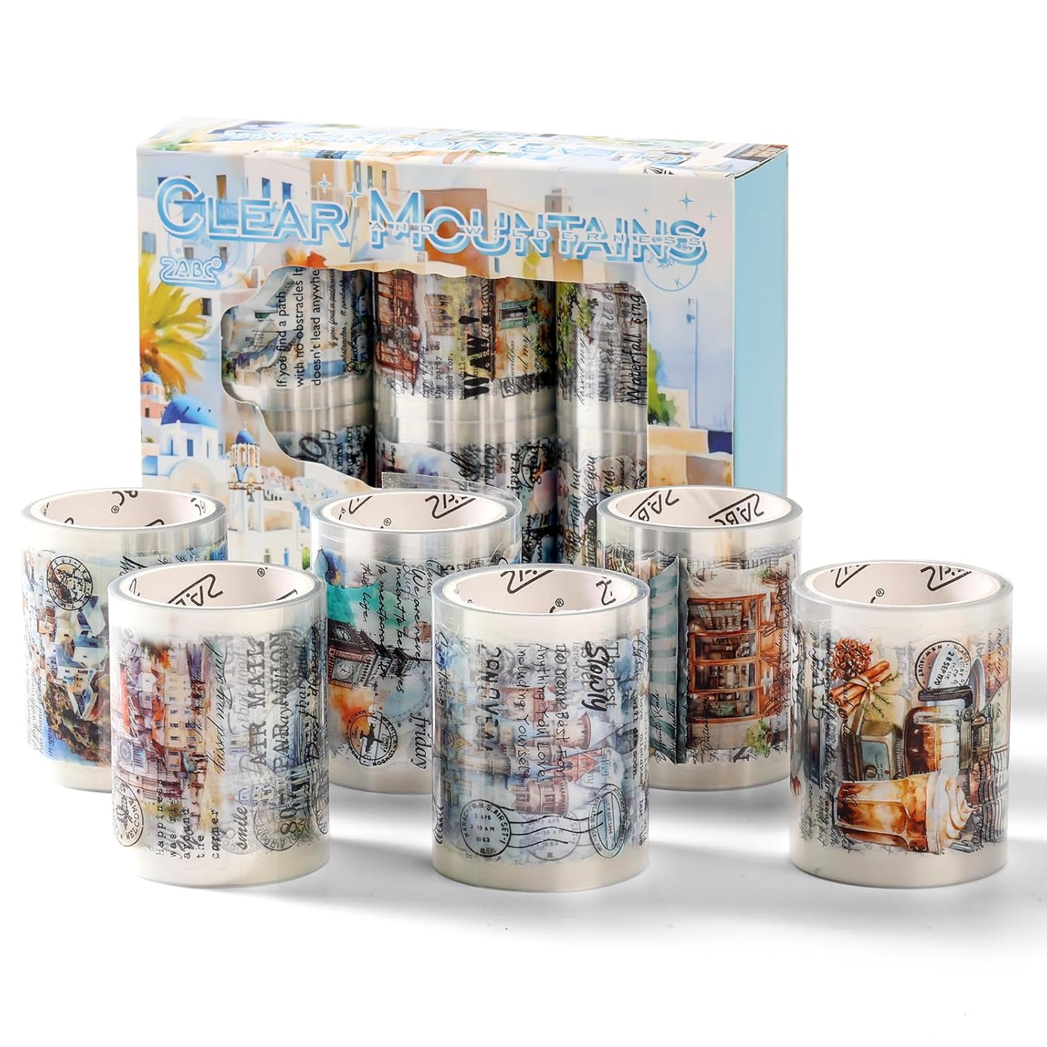 6 Rolls PET Tapes Set Pre Cut Tape Stickers City Stickers journaling Tape Transparent Sticker Books for Scrapbooking Scrapbook Tape Decorative