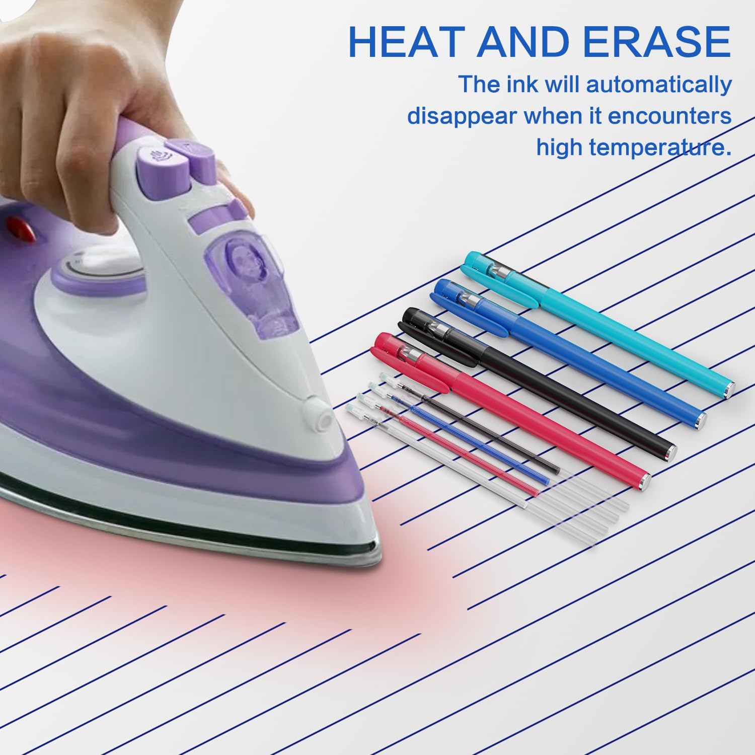 - 【Erasable Pen for Sewing Supplies】: The writing marks can be easily erased with an iron, especially suitable for temporary markings for fabric cutting, embroidery and sewing. In addition, the writing ink can last for a long time and will not disappear before you finish your project.