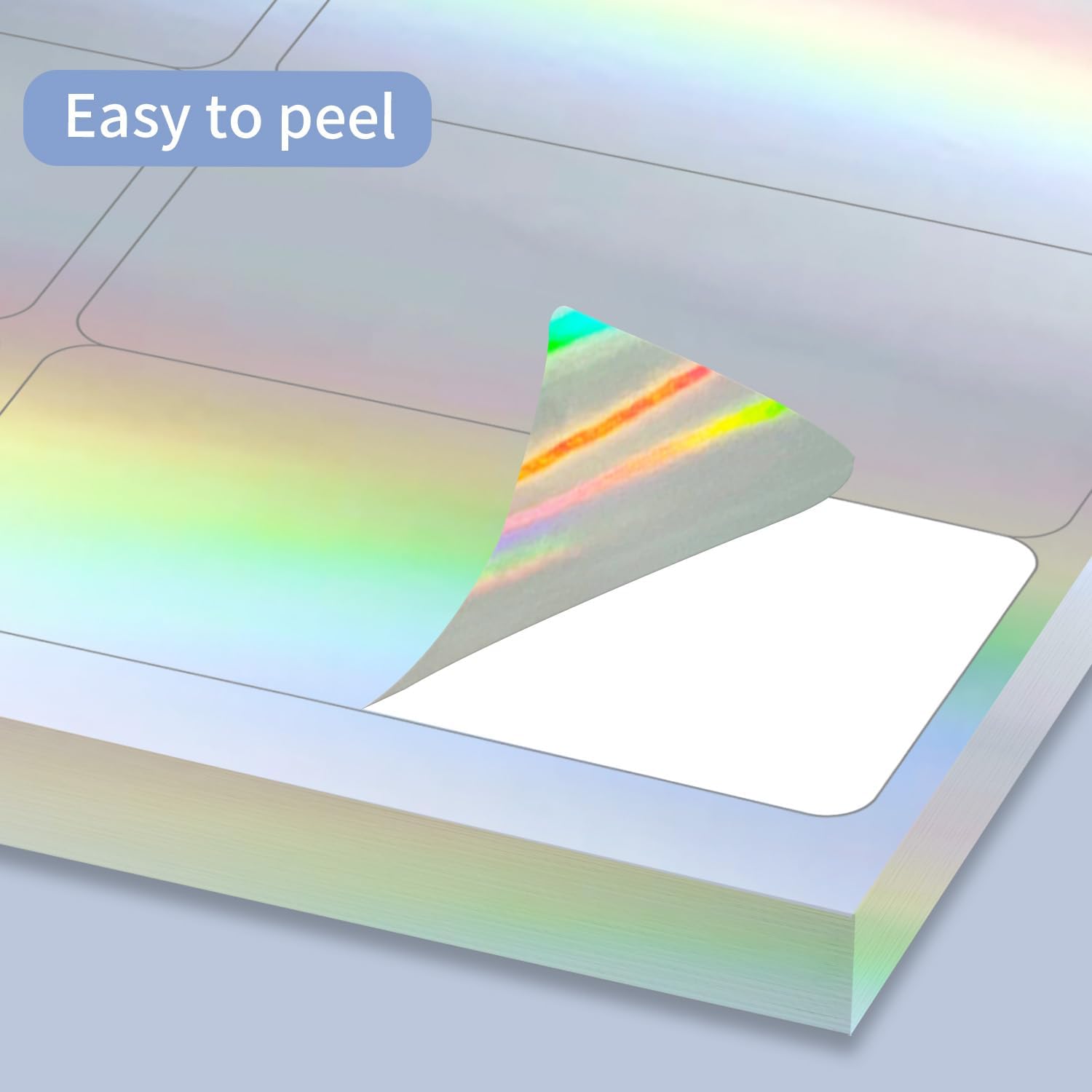 STARLIBOO 1" x 2-5/8" Address Labels- Holographic Color Stickers for Laser/Ink Jet Printer mailing Labels 8.5"×11"- Holographic Silver