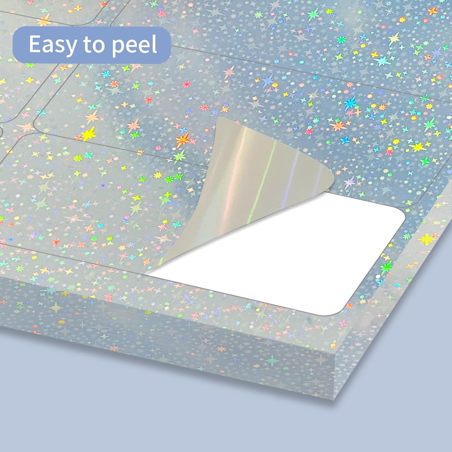 STARLIBOO Shipping Labels Stickers, 2"×4" Printable Holographic Mailing Labels for Laser/Inkjet Printing- Matte, Permanent Adhesive Sticker (Holographic Star)