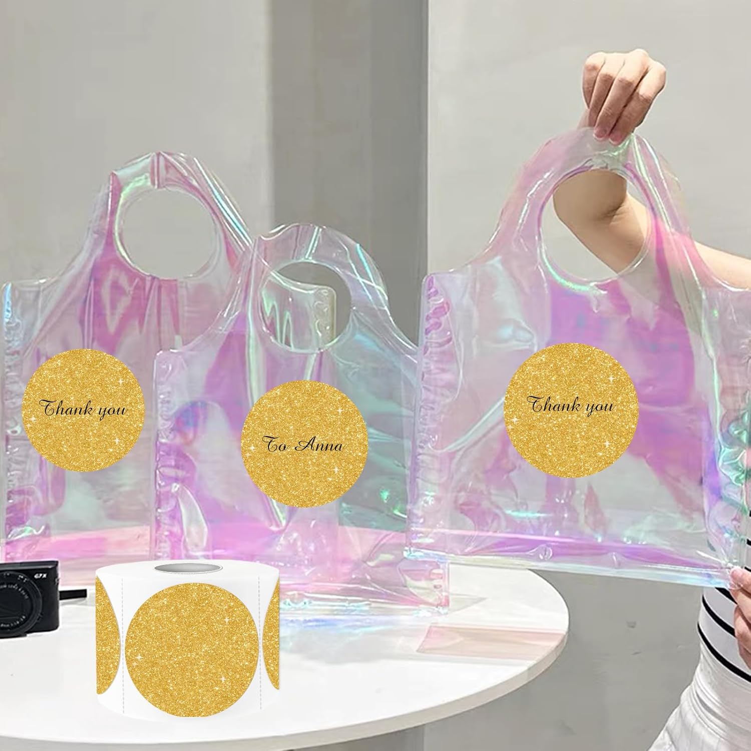 3" Holographic Direct Thermal Label Stickers, Round Printable Rainbow Glitter Thermal Printer Sticker Labels for Gift Wrapping, Self-Adhesive DIY Custom Logo Design- Shiny Gold