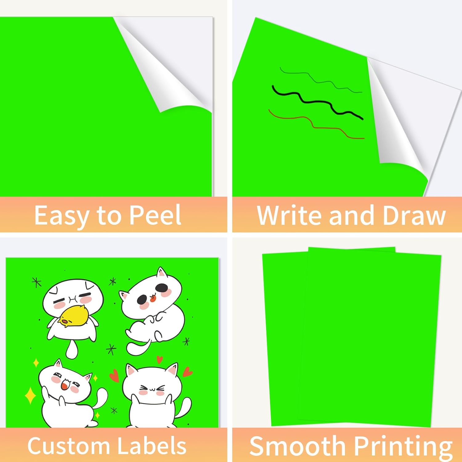 Neon Green Sticker Paper Labels for Laser & Inkjet Printer, Fluorescent Green Printable Sticker Paper- Matte, Letter Size 8.5" x 11"