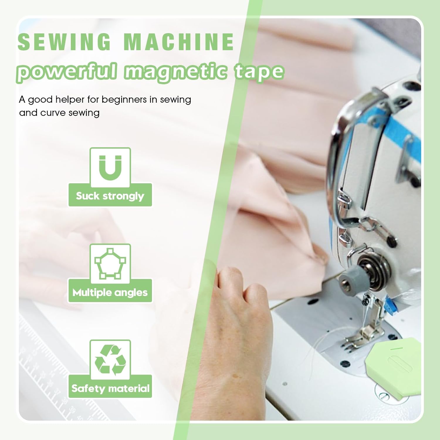 Pcmursal 4 Pieces Magnetic Seam Guide for Sewing Machine, Upgraded Multi-Purpose Tool Polygonal Magnetic Seam Guide with Scale, Sewing Supplies and Accessories (Green)