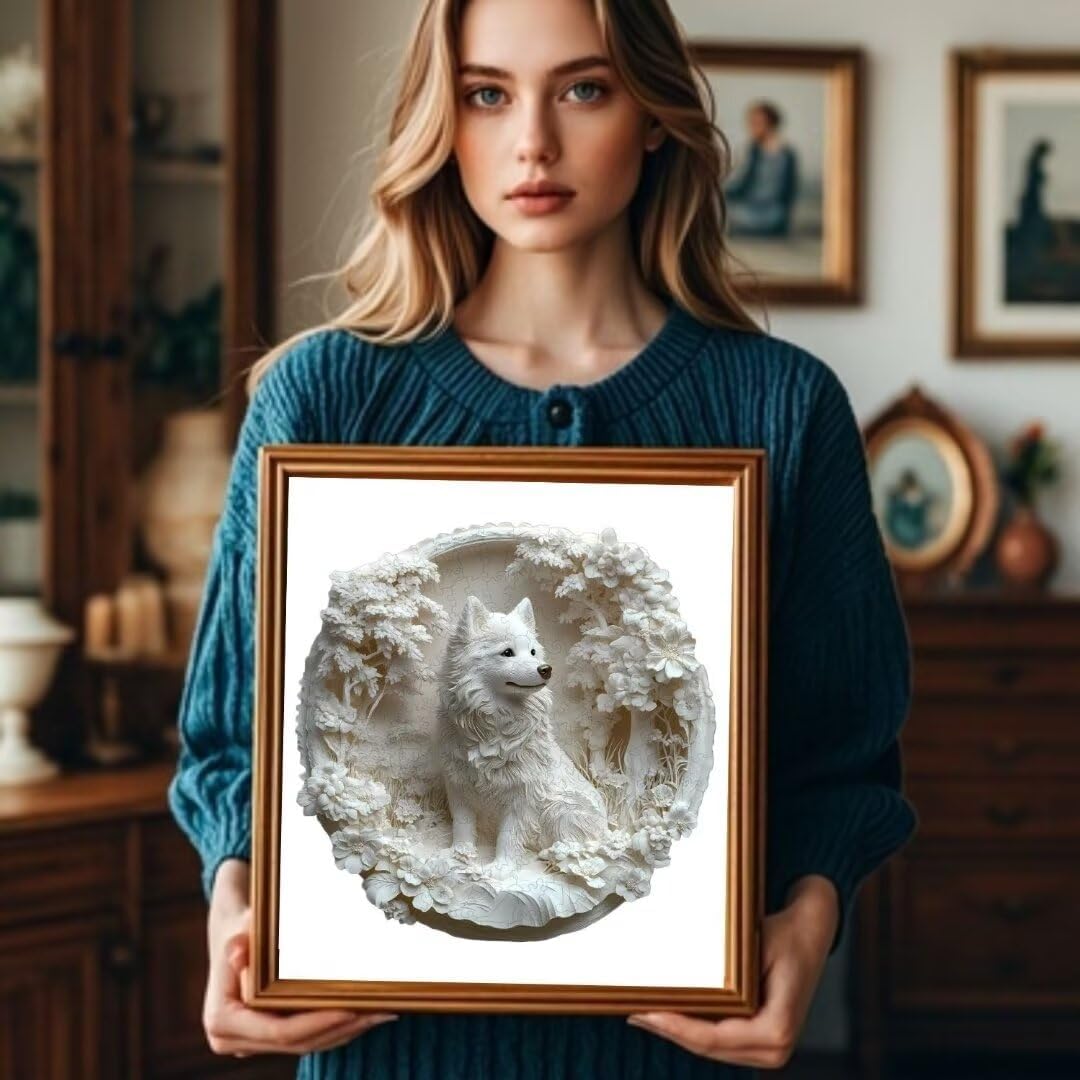Wooden Puzzles Adults, 3D Samoyed Dog Wooden Puzzles 200 Pieces, Unique Animal Shaped Wood Challenging Jigsaw Puzzles Gifts for Adults, 11.4x11.1in
