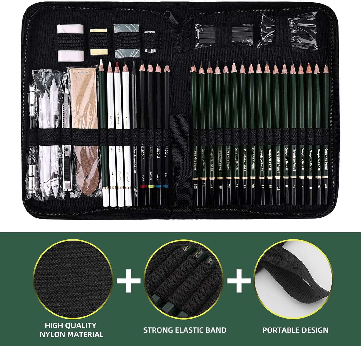- ✏️【Portable Storage Design】All sketching kit tools are packed in a portable canvas bag, convenient for you to sketch and draw anytime and anywhere. All drawing set tools are well organized in the canvas bag, you can always find the sketching pencils you need without clutter.
