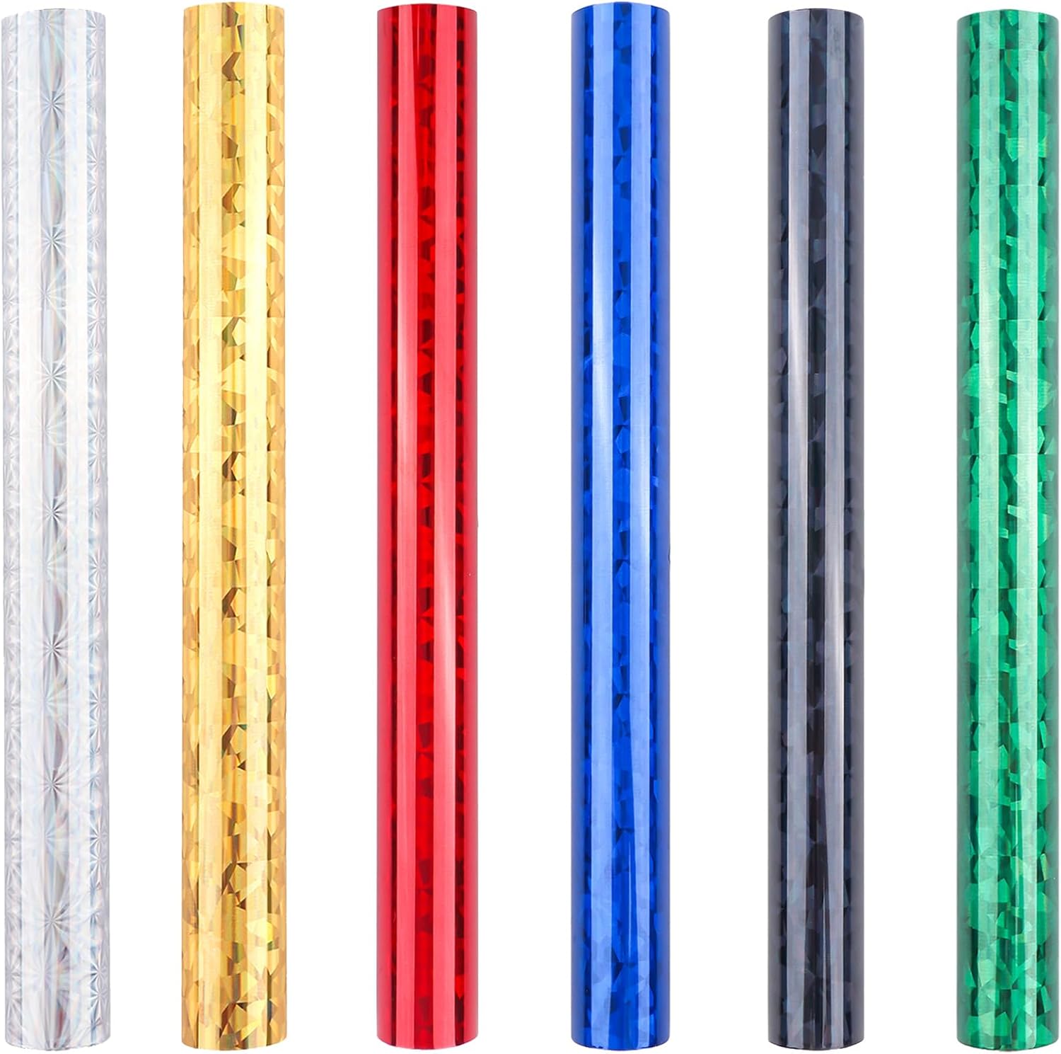 - 【PACKAGE INCLUDES】Contains 6 assorted colors of the transfer foil rolls,EachRollSize:Approx.15cmx1.3m/5.9inx4.26ft Add Beautiful DIY details to any project to make them stand out; Great for scrapbooks, cards, journals, planners, and so much more