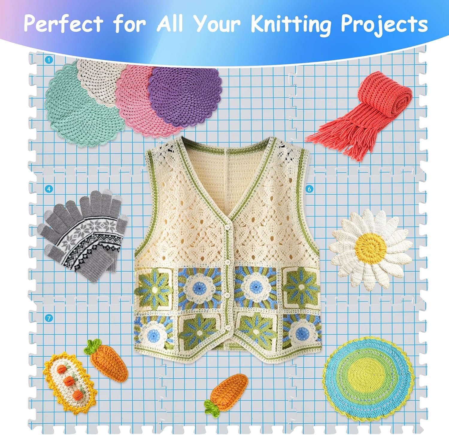- 🧶[Universal for All Projects] - The size of individual knit blocking mats is 12*12 inch, you can assemble them into any shape as your crochet projects need. 1 inch grids are perfectly aligned as preference that allows you to precisely work on your projects and professionally finish them without any doubt.