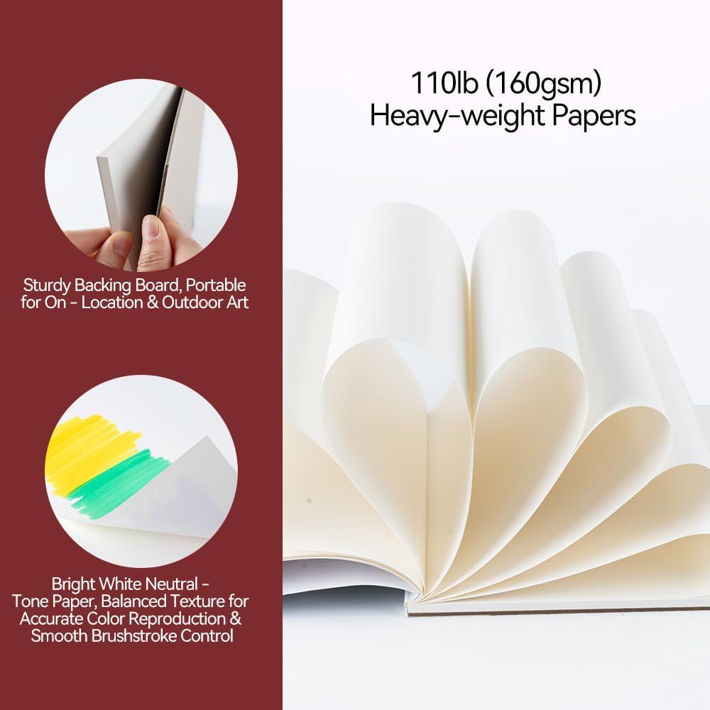 - This pad is versatile, suitable for different medium, support alcohol markers, acrylics markers, watercolors, gouache, inks, pencils and pastels, etc.