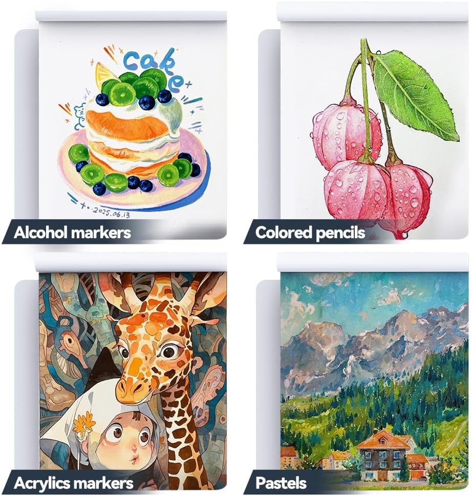 - This pad is versatile, suitable for different medium, support alcohol markers, acrylics markers, watercolors, gouache, inks, pencils and pastels, etc.