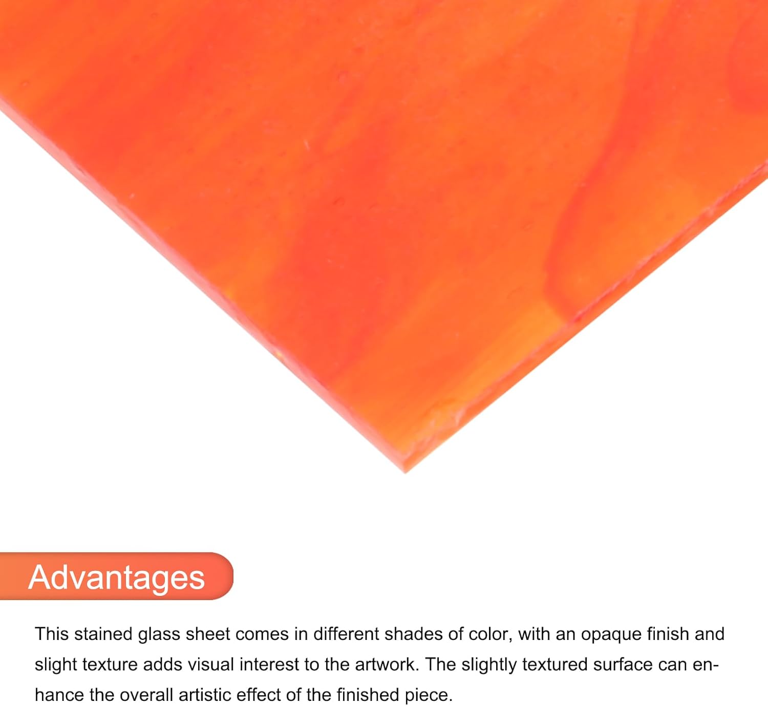 - This stained glass sheet comes in different shades of color, with an opaque finish and slight texture adds visual interest to the artwork. The slightly textured surface can enhance the overall artistic effect of the finished piece.