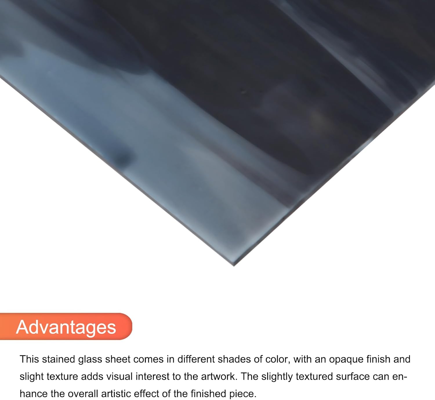 - This stained glass sheet comes in different shades of color, with an opaque finish and slight texture adds visual interest to the artwork. The slightly textured surface can enhance the overall artistic effect of the finished piece.