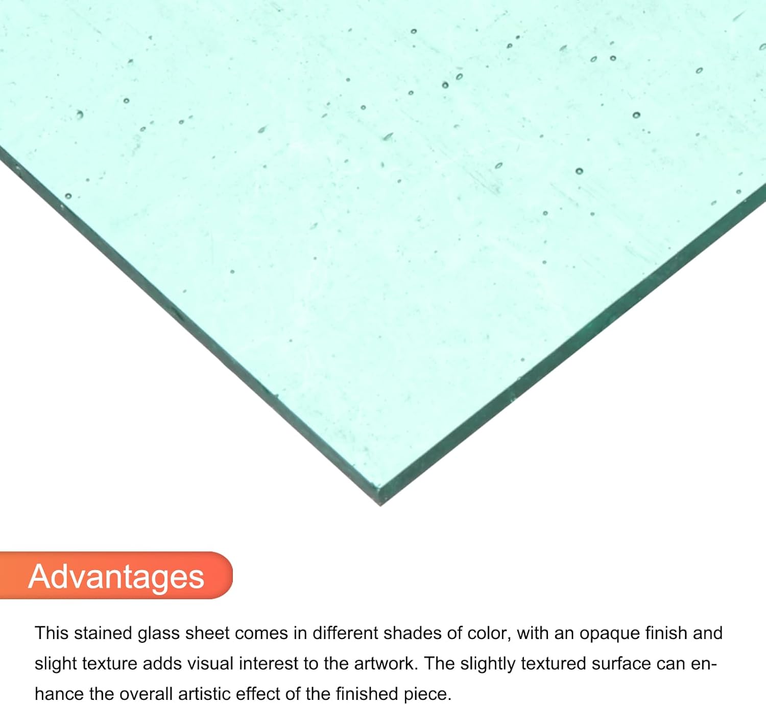 - This stained glass sheet comes in different shades of color, with an opaque finish and slight texture adds visual interest to the artwork. The slightly textured surface can enhance the overall artistic effect of the finished piece.