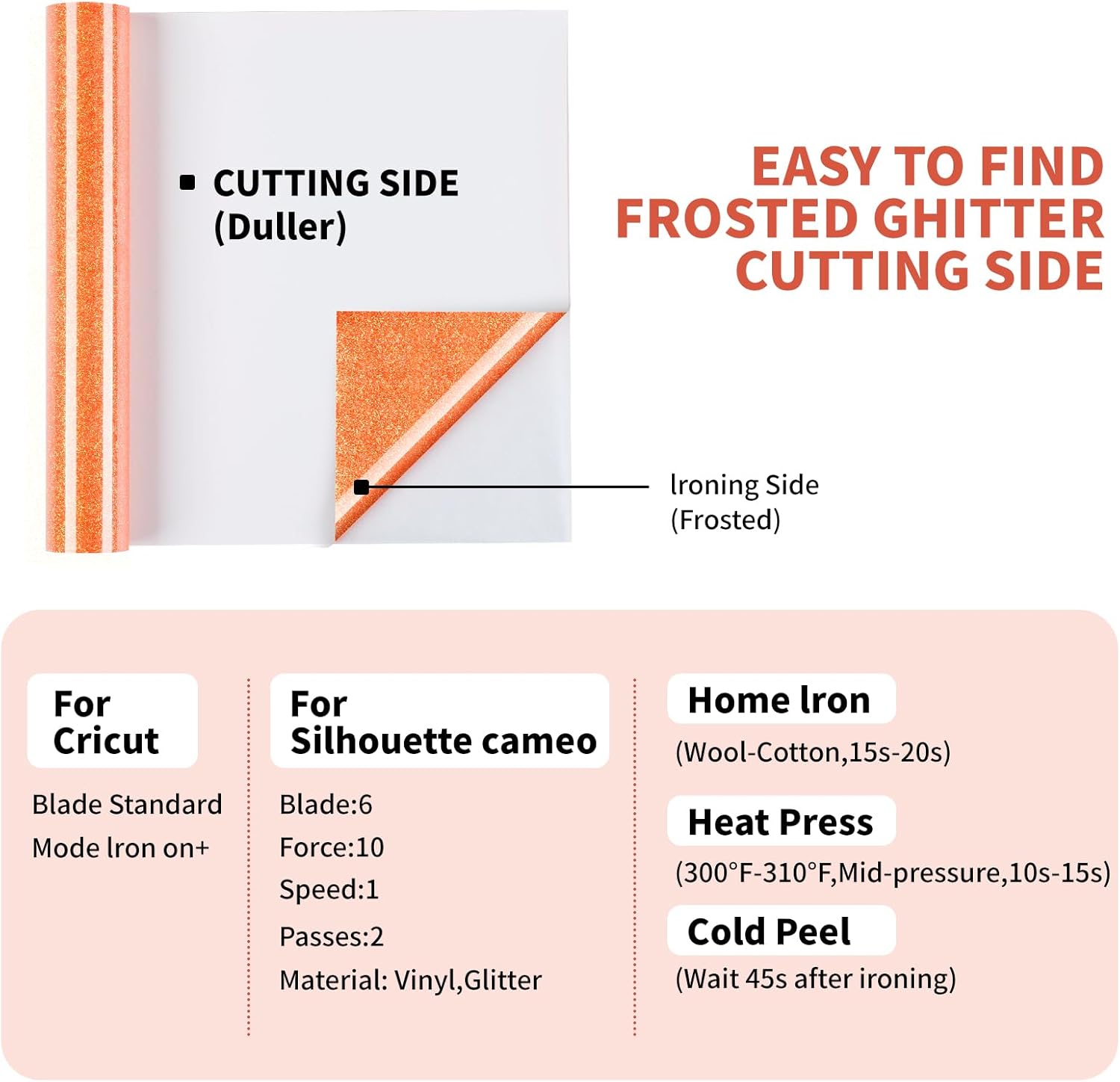 - 【10 INCH x 8 FEET】HTVRONT glitter htv are easy and convenient to cut into different size of art designs or logos or letters and perfect for 12x12" and 12x24" cutting mats. Our iron on vinyl are compatible for all cutter machine. The glitter iron on vinyl uses fine glitter, which is smooth, easy to layer and apply. All the glitters are sealed in, never residue