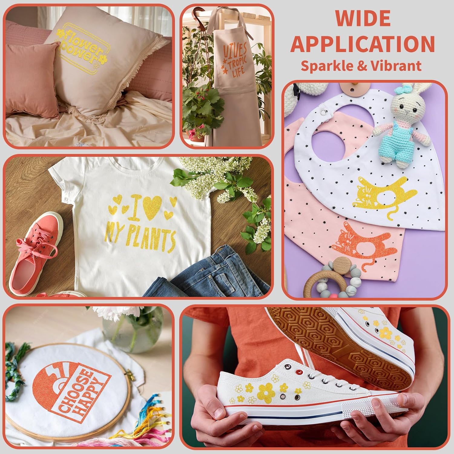 - 【USE WIDELY & SAVE TO WEAR】Your shirt, tote bags, sportswear, aprons, hat and pillow, which used our silver glitter htv, make you stand out from the crowd. Silver htv are suitable for athletic mesh fabrics, Cotton, polyester and cotton blend, lycra/spandex, textiles etc.Our silver glitter htv vinyl materials are SGS certified eco-friendly and are safe to wear