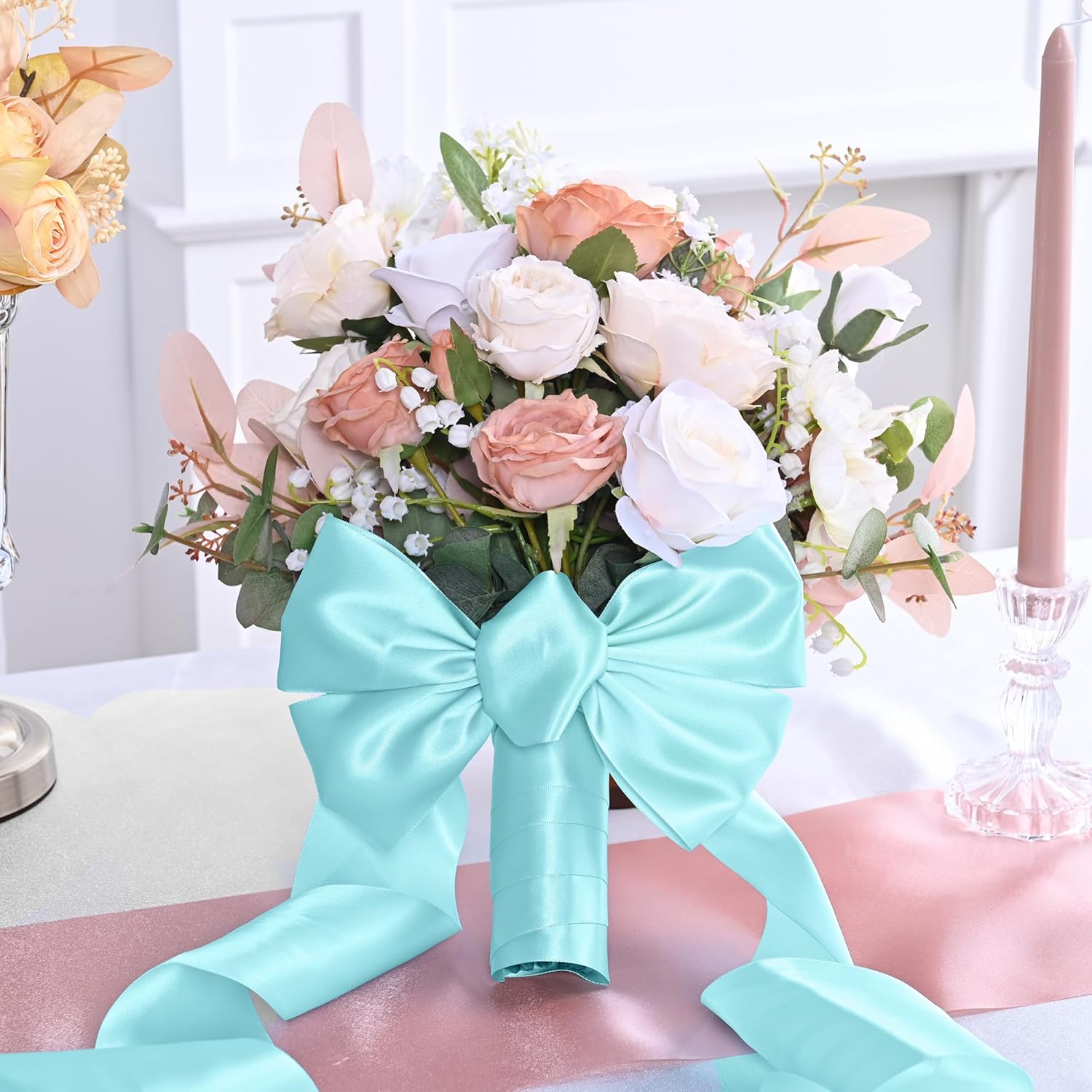 - 【Lt Blue satin ribbon】Double face satin ribbon total 15 yards, 3 inch.Quantity can meet your daily needs well.