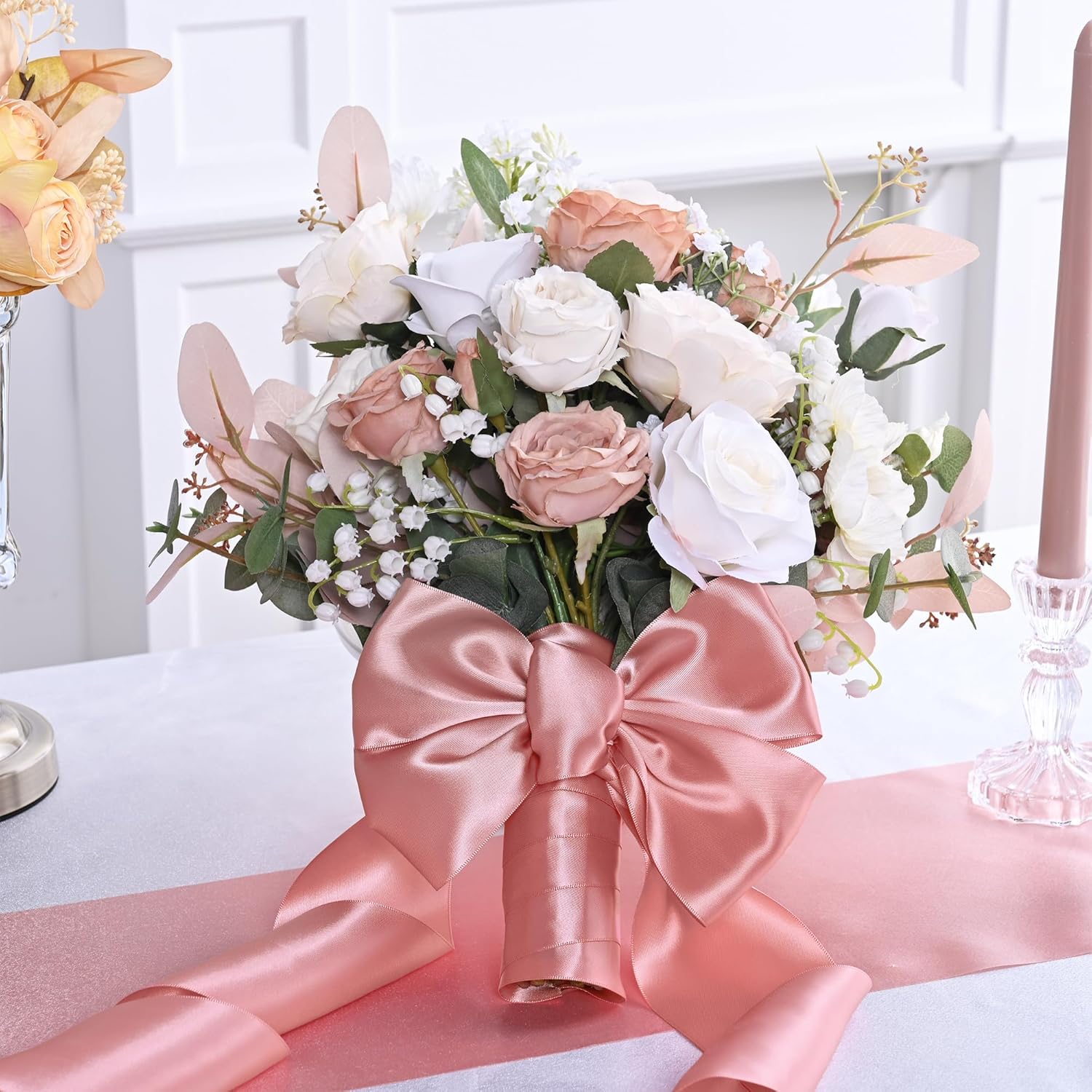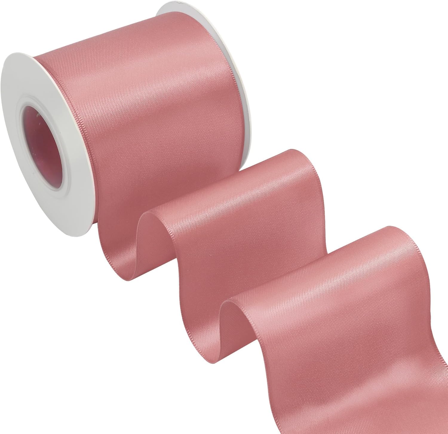 - 【Dusty Pink satin ribbon】Double face satin ribbon total 15 yards, 3 inch.Quantity can meet your daily needs well.