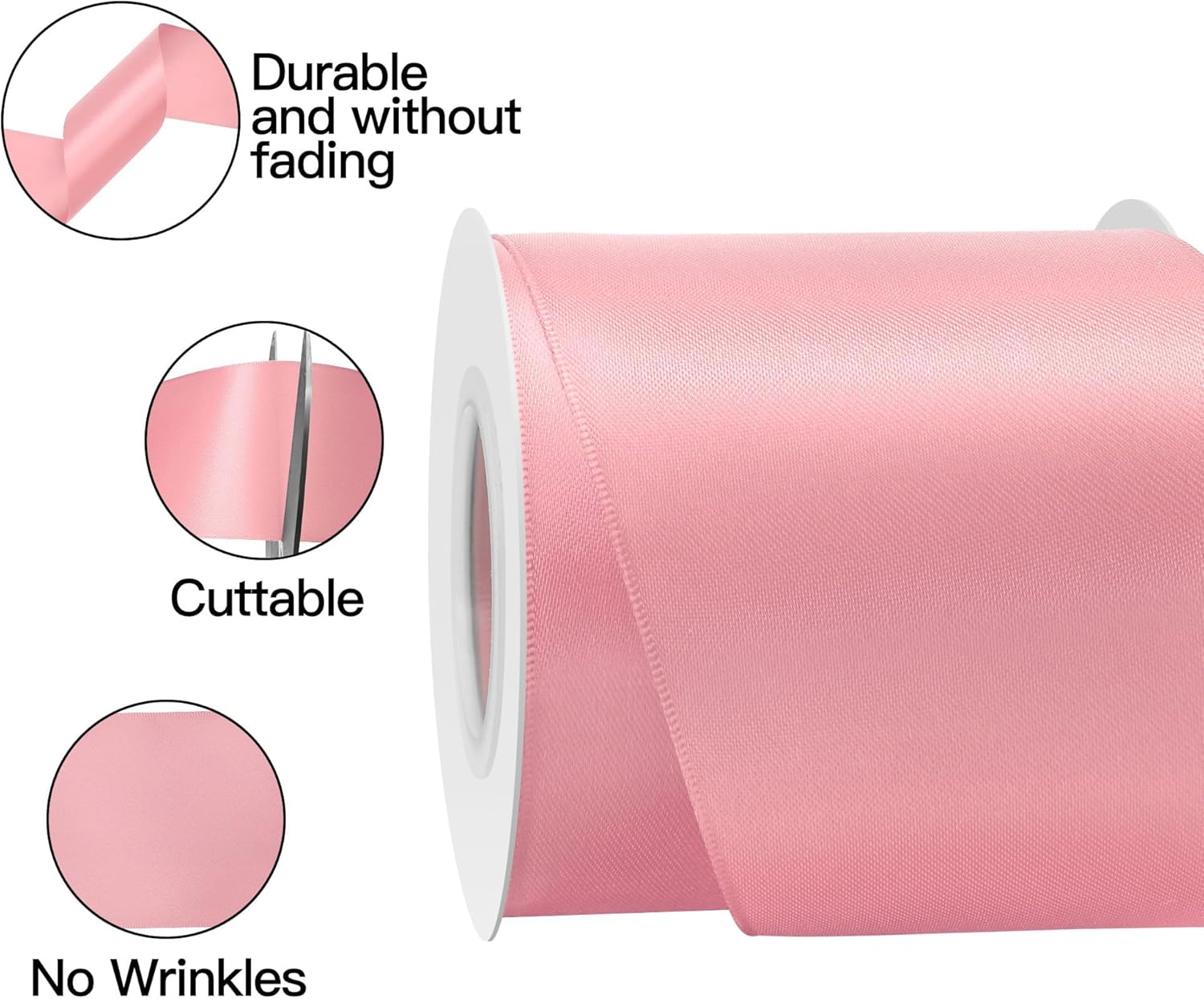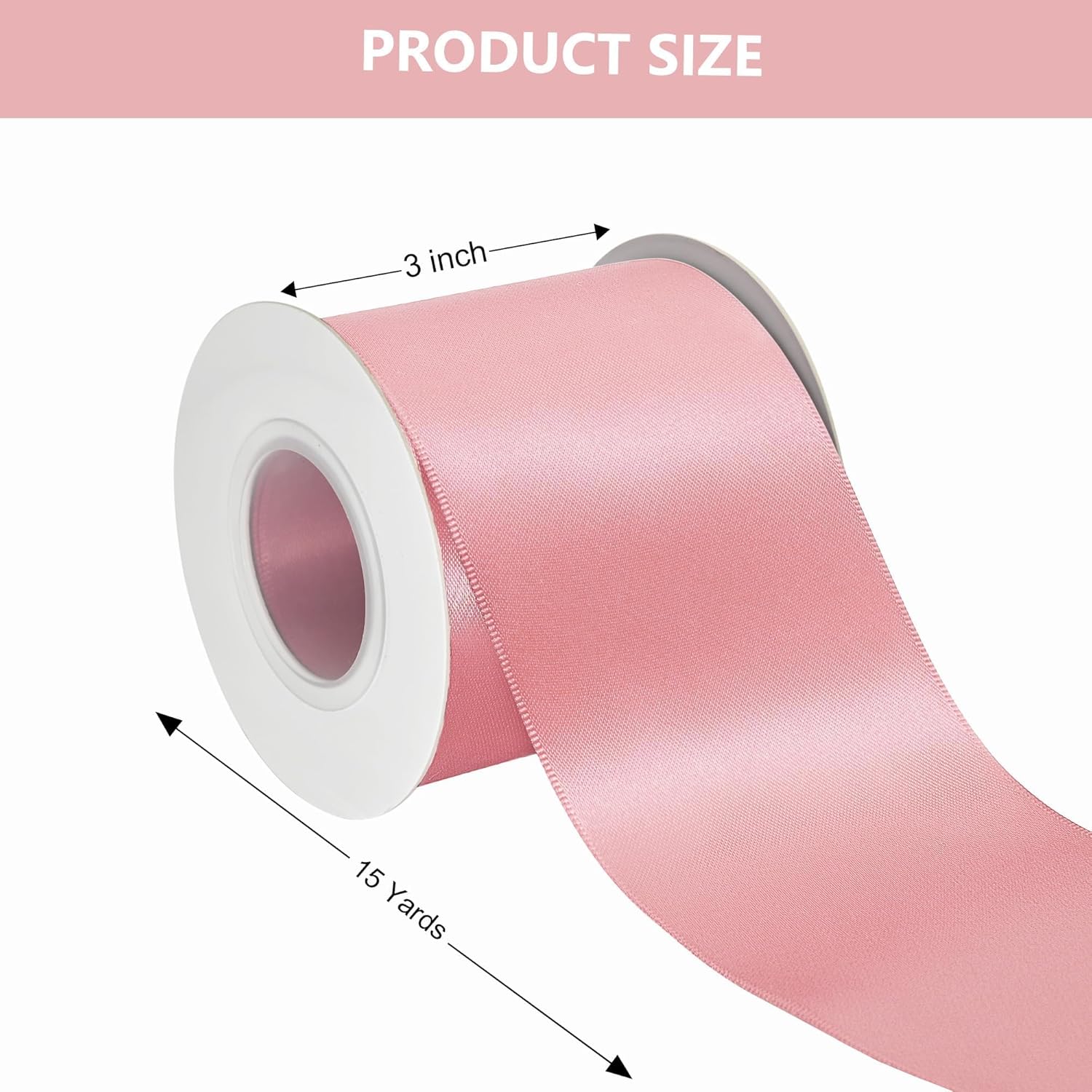 - 【Pink satin ribbon】Double face satin ribbon total 15 yards, 3 inch.Quantity can meet your daily needs well.