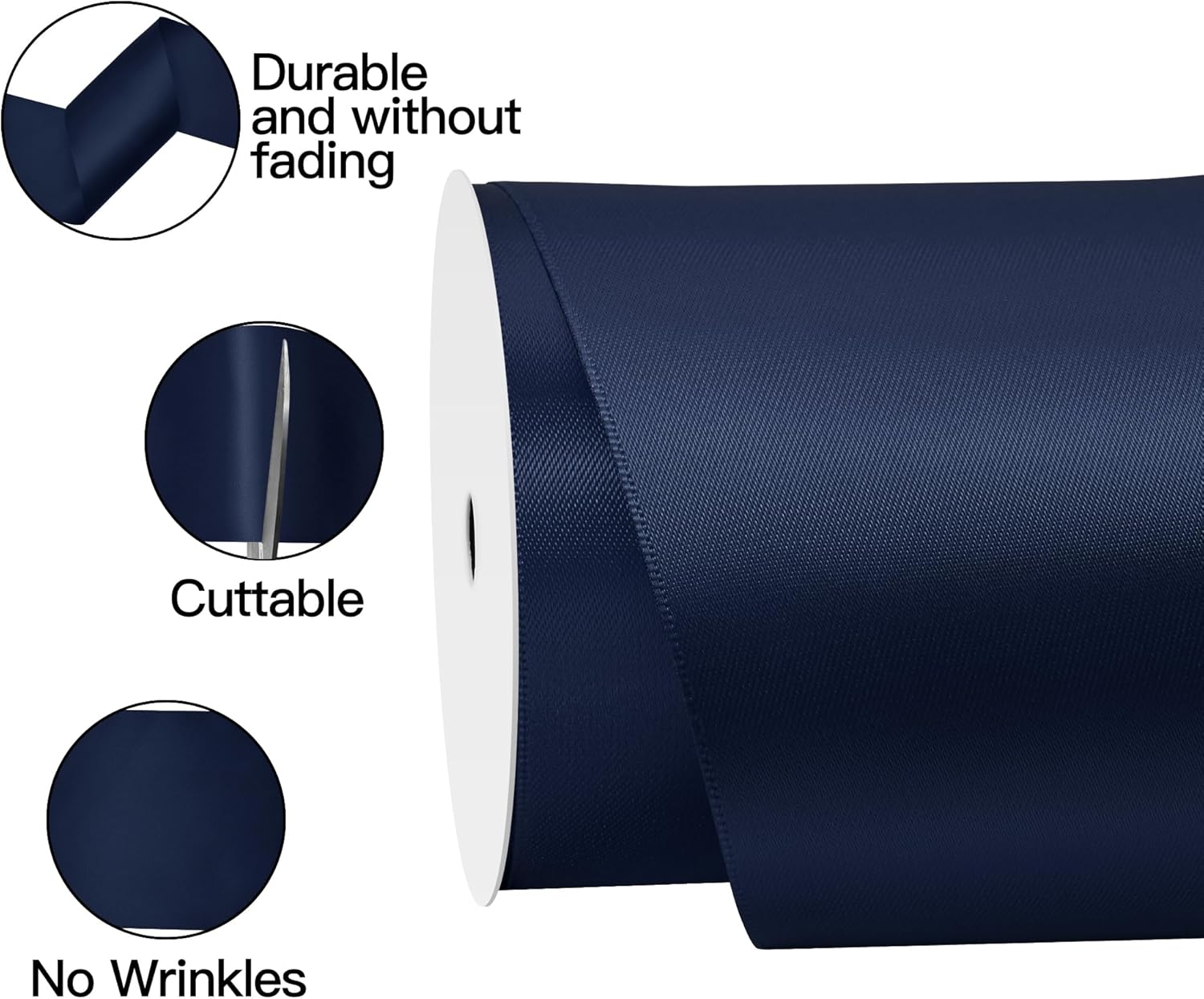 - 【Navy Blue satin ribbon】Double face satin ribbon total 15 yards, 4 inch.Quantity can meet your daily needs well.