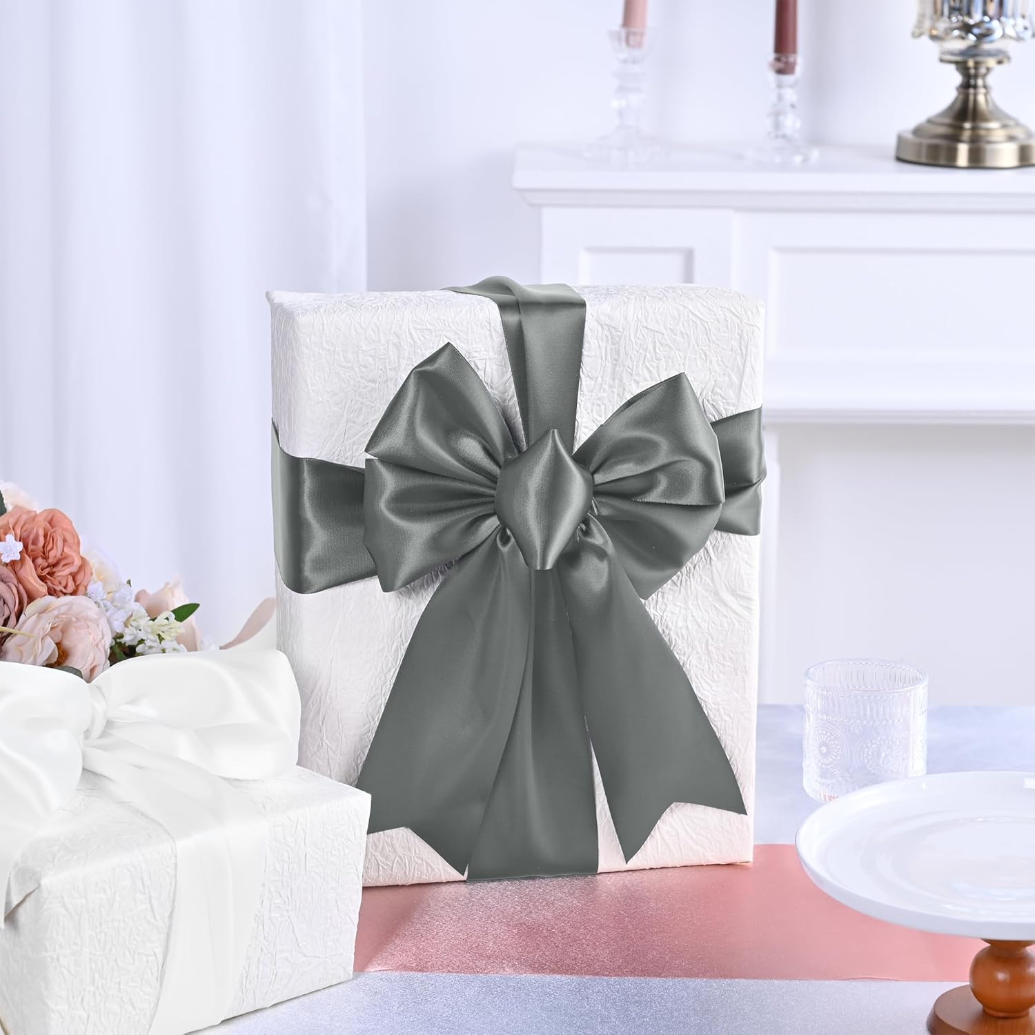 - 【Silver satin ribbon】Double face satin ribbon total 15 yards, 3 inch.Quantity can meet your daily needs well.