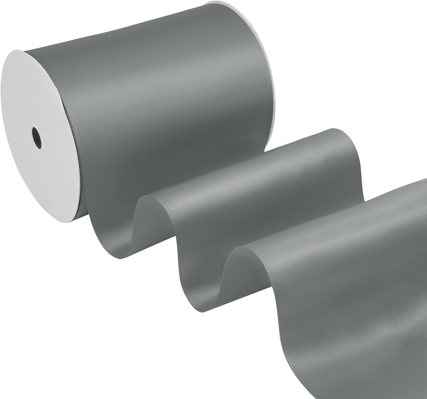 Silver Satin Ribbon 4 Inch X 15 Yards Solid Color Double Faced Ribbons Perfect for Crafts Wedding Decor Bow Making Arts Sewing and More