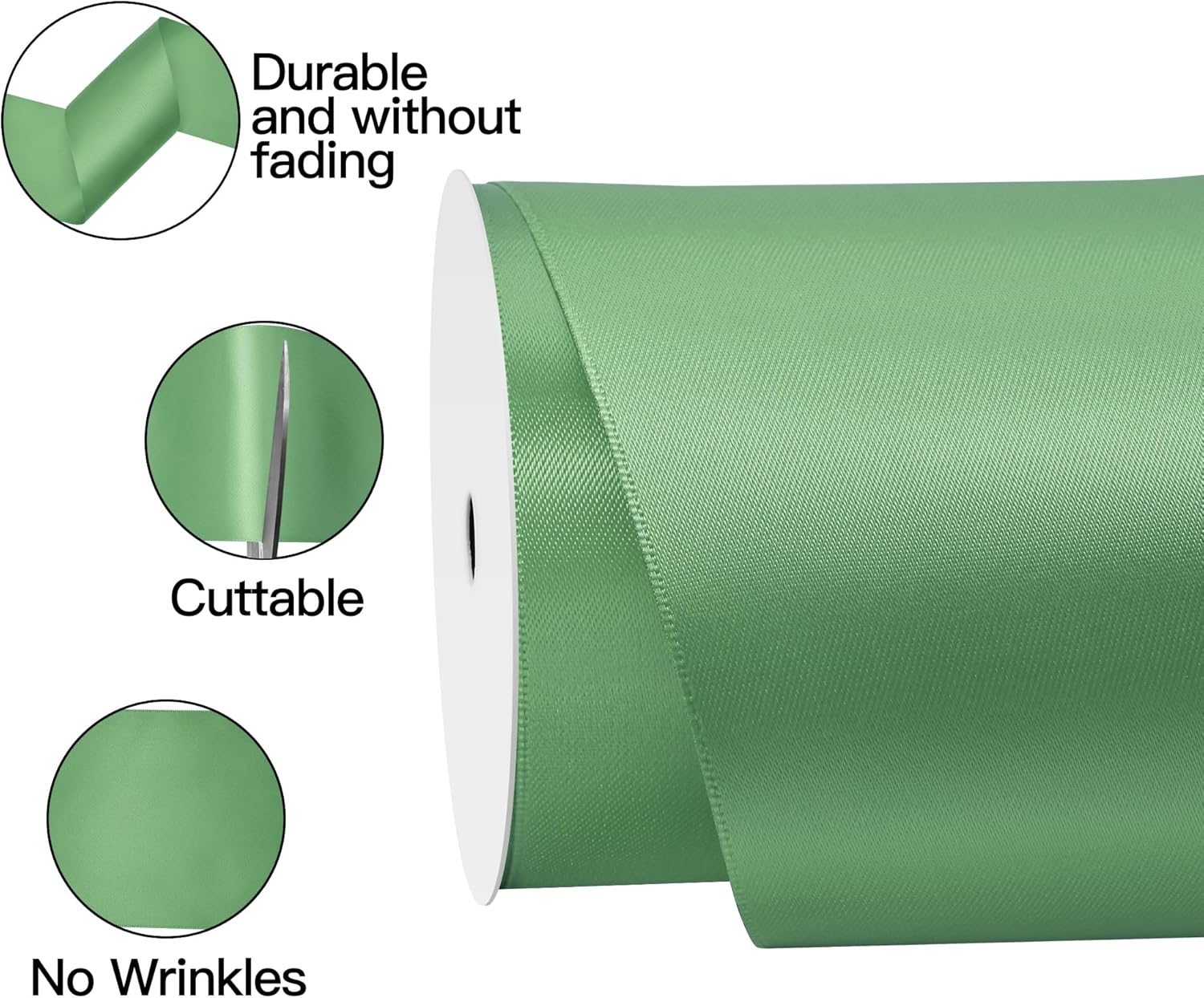 Sage Green Satin Ribbon 4 Inch X 15 Yards Solid Color Double Faced Ribbons Perfect for Crafts Wedding Decor Bow Making Arts Sewing and More