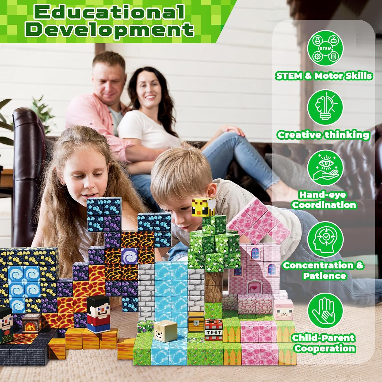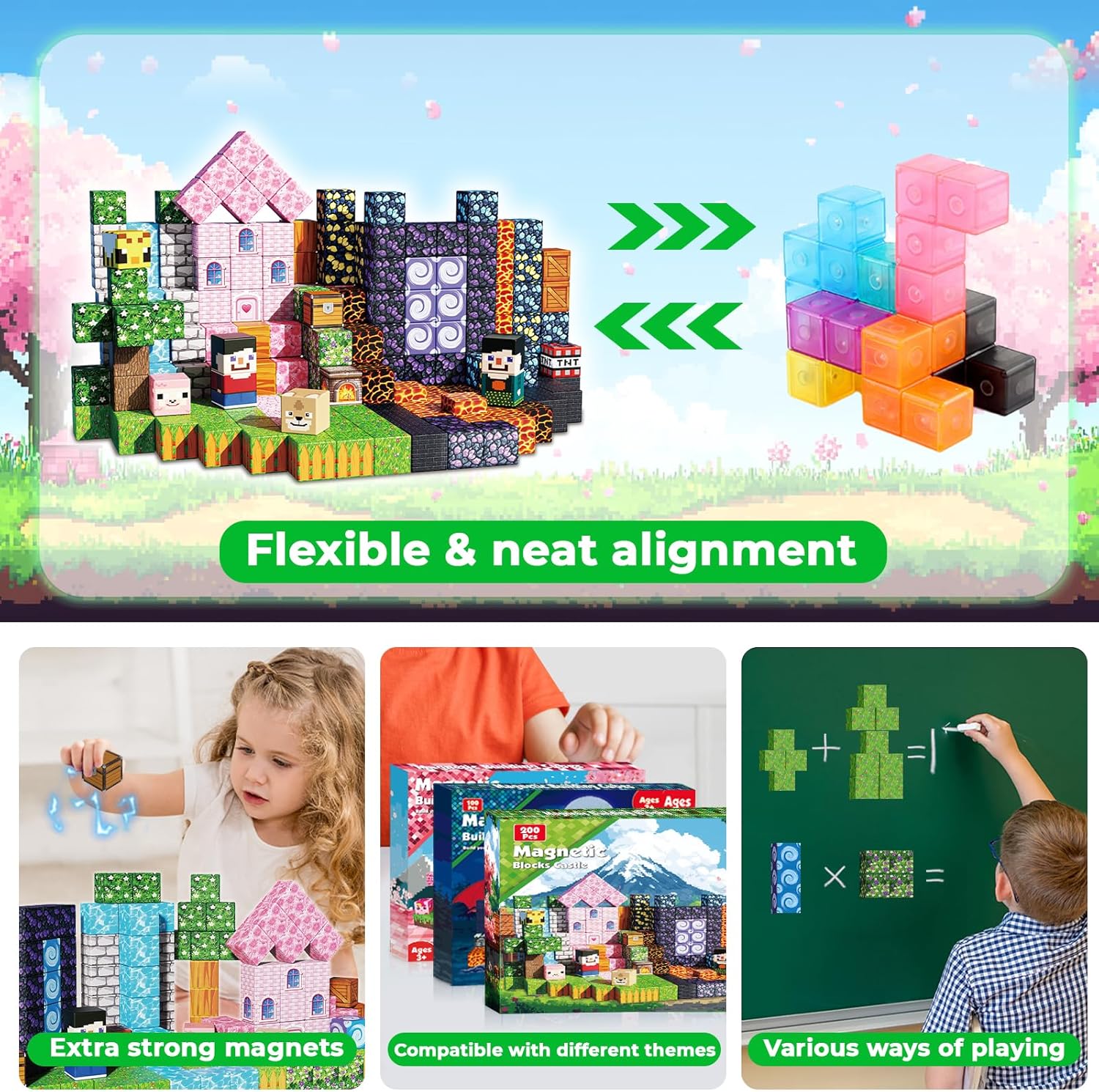 - 【High-Quality Magnetic Blocks】: Each magnetic block features 8 powerful magnets, ensuring secure connections for complex designs. Whether building towering volcanoes or enchanted forests, your creations will stay sturdy and durable.