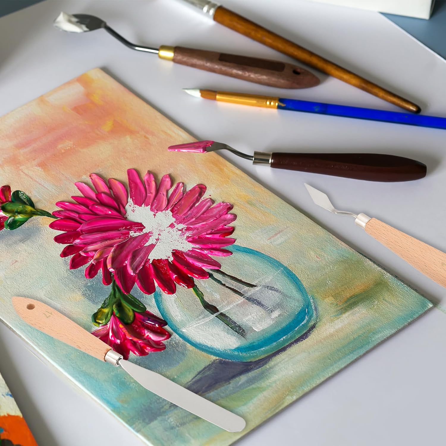 - Application: A palette knife is widely used in oil, canvas painting, large paintings, miniature, models, handicrafts, murals, etc. Suitable for mixing, smoothing, spreading, blending, and scratching. It is a good choice for painting beginners and professional artists to create their artwork.